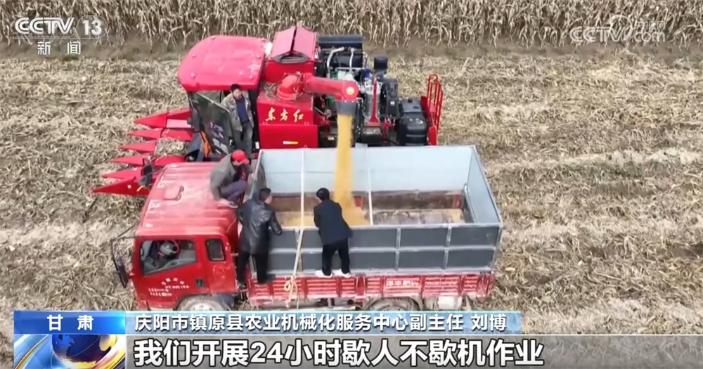 庆阳市镇原县农业机械化服务中心副主任刘博称:“为抢进度,对于土壤含水量过高、无法开展机械作业的地块,积极组织群众进行人工采收和晾晒脱粒。对于适宜机械作业的地块,我们开展24小时‘歇人不歇机’作业,全面加快秋收进度。”