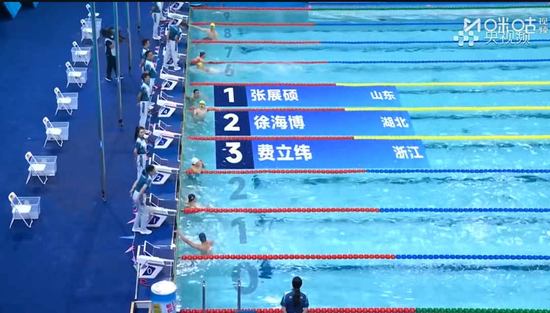 11月10日,第十五届全运会男子400米自由泳决赛,张展硕夺得冠军。这也是十五运会游泳赛场的首枚金牌,潘展乐第5,孙杨第6。