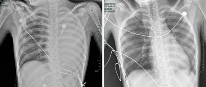 治疗前后影响对比,左肺从“白肺”到正常状态