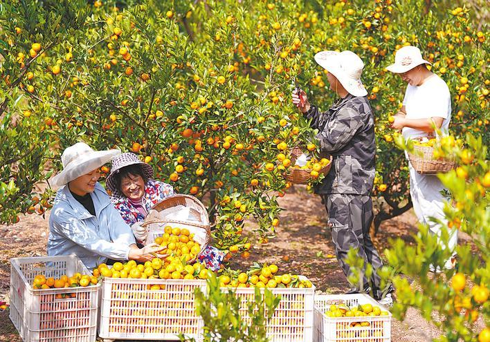 11月5日,巴东县东瀼口镇雷家坪社区的柑橘园里,果农们正在采摘金黄饱满的南丰蜜橘。