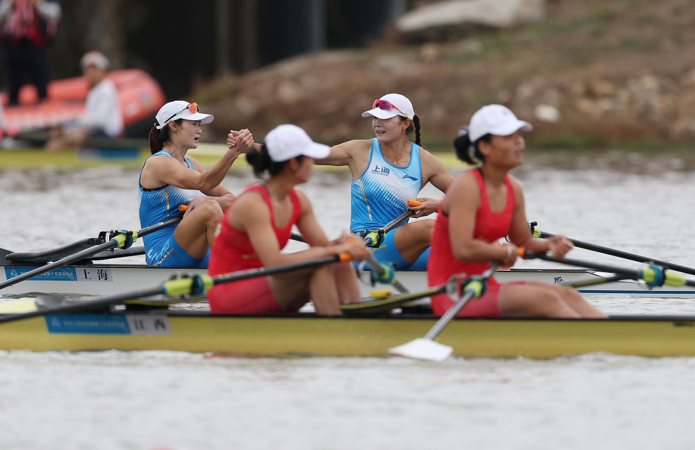 11月11日,在广州举行的第十五届全国运动会赛艇项目女子双人双桨决赛中,上海队选手陈云霞/张灵获得冠军。