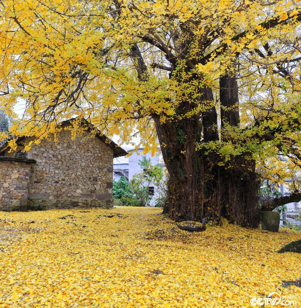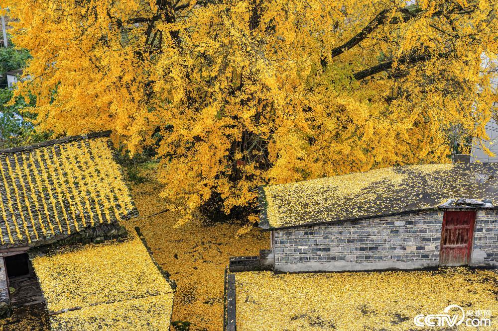 11月10日,在贵州省黔南布依族苗族自治州龙里县草原乡里隆堡村拍摄的古银杏树,纯正金色美不胜收,呈现山村自然生态之美。视觉中国