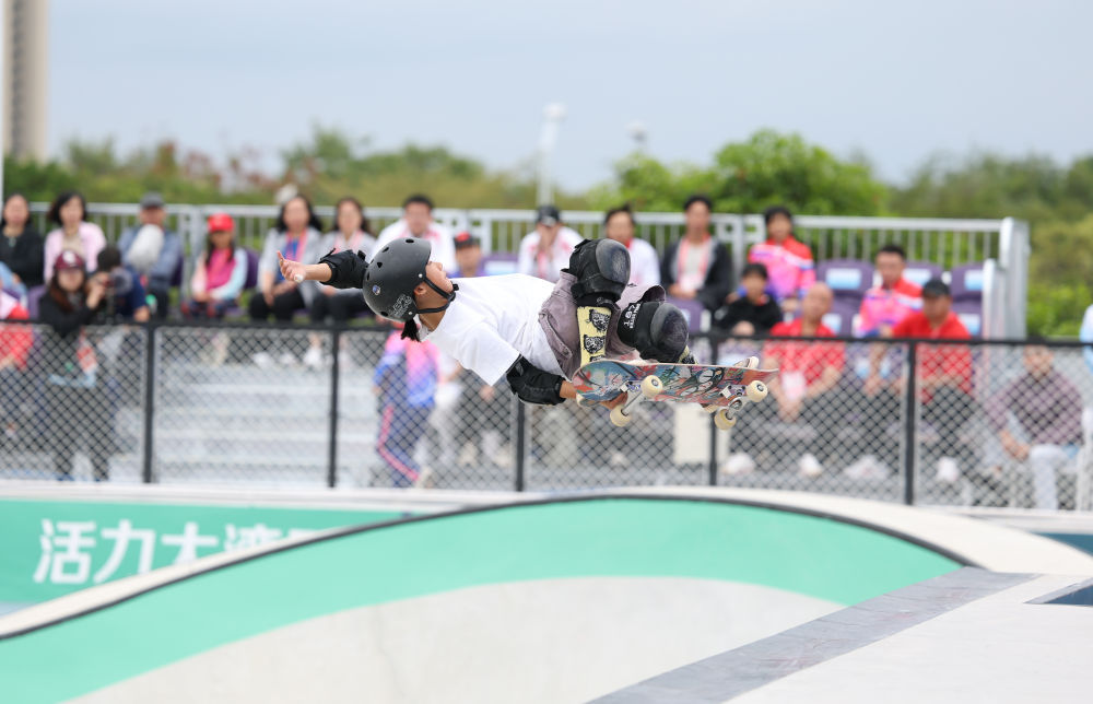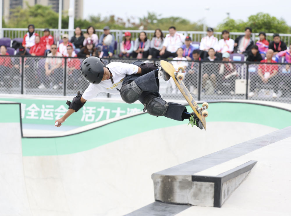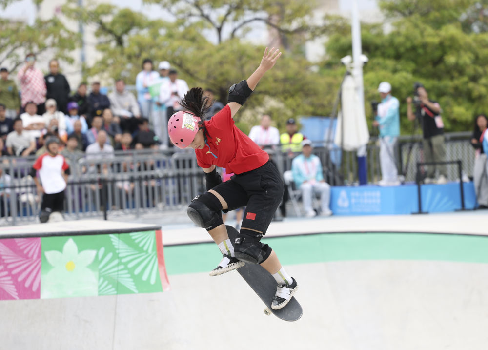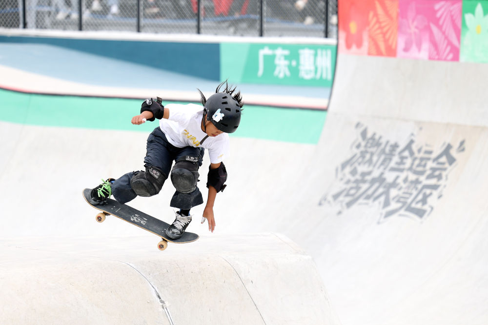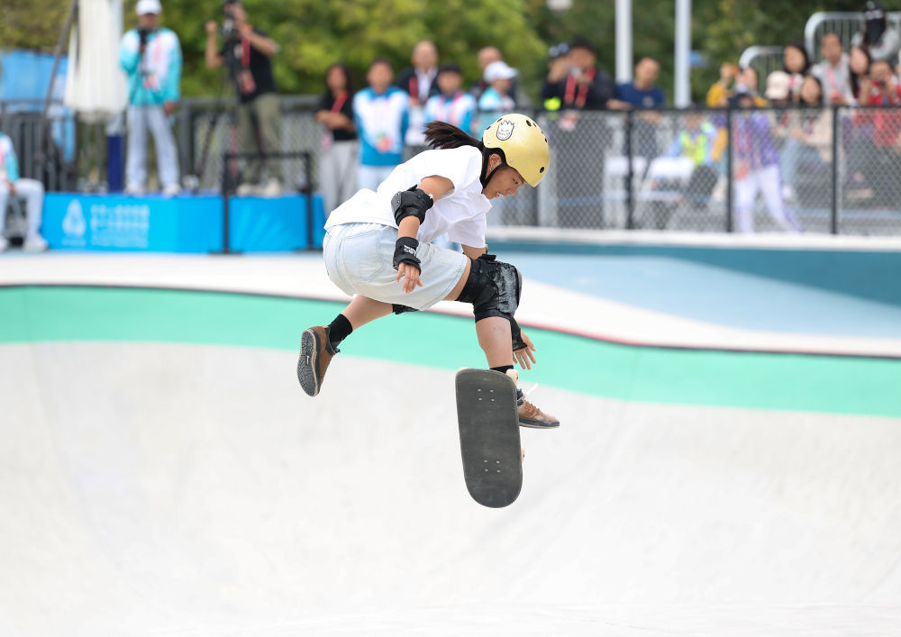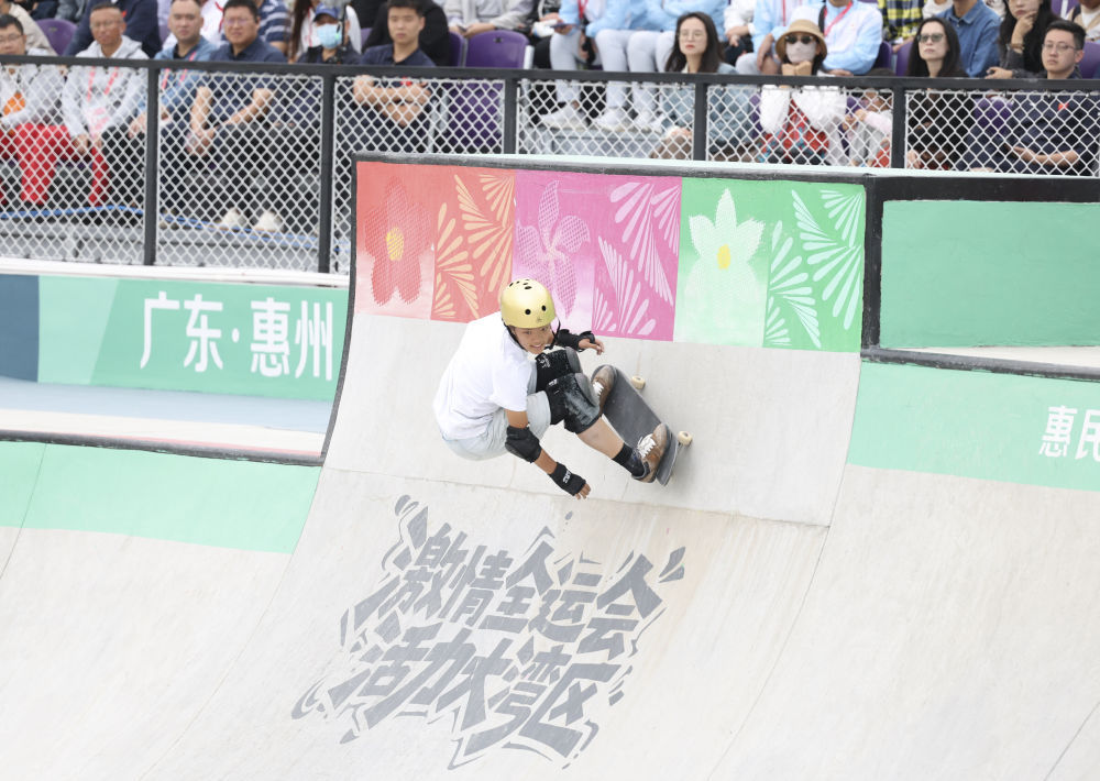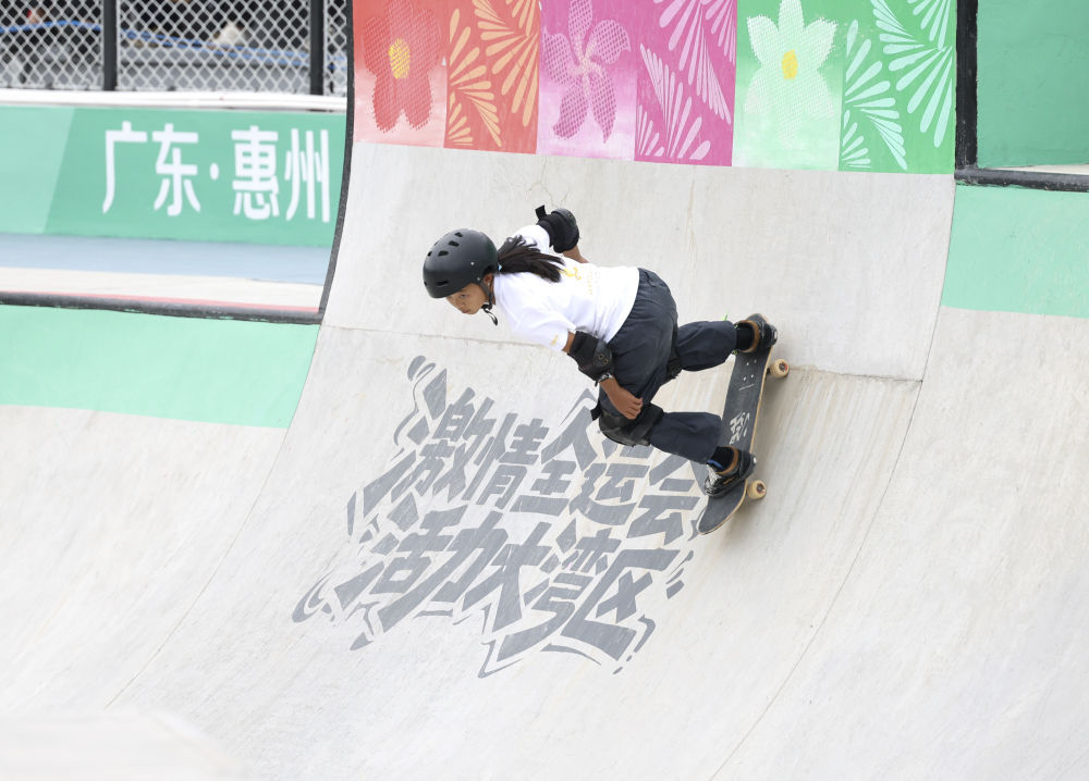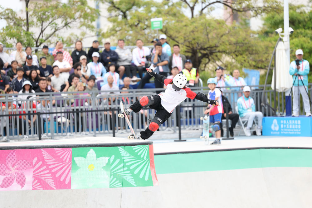 11月11日,第十五届全国运动会滑板项目女子碗池赛决赛在广东惠州举行,广东队选手邹明珂获得冠军,山东队选手孟令妍获得亚军,广东队选手郑好好获得季军。