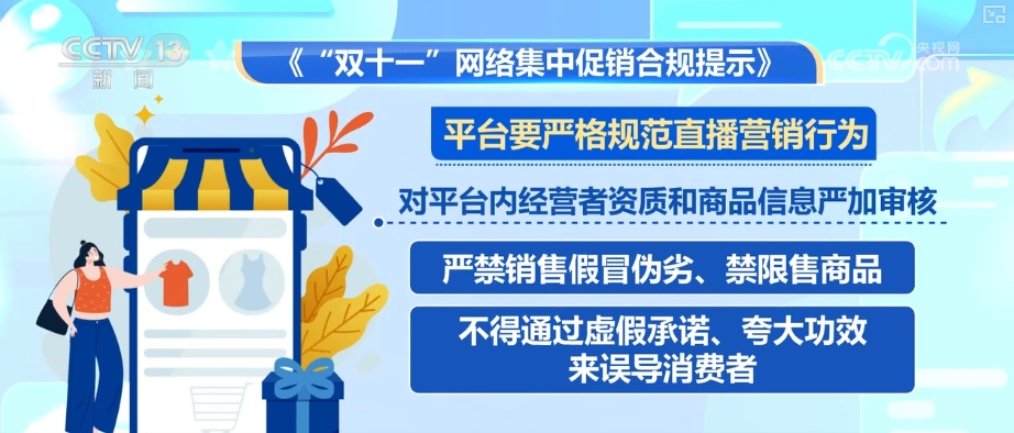 市场监管总局发布“双十一”合规提示指出,平台要严格落实主体责任,确保平台内商家的信息真实有效,所有规则都要公开透明。