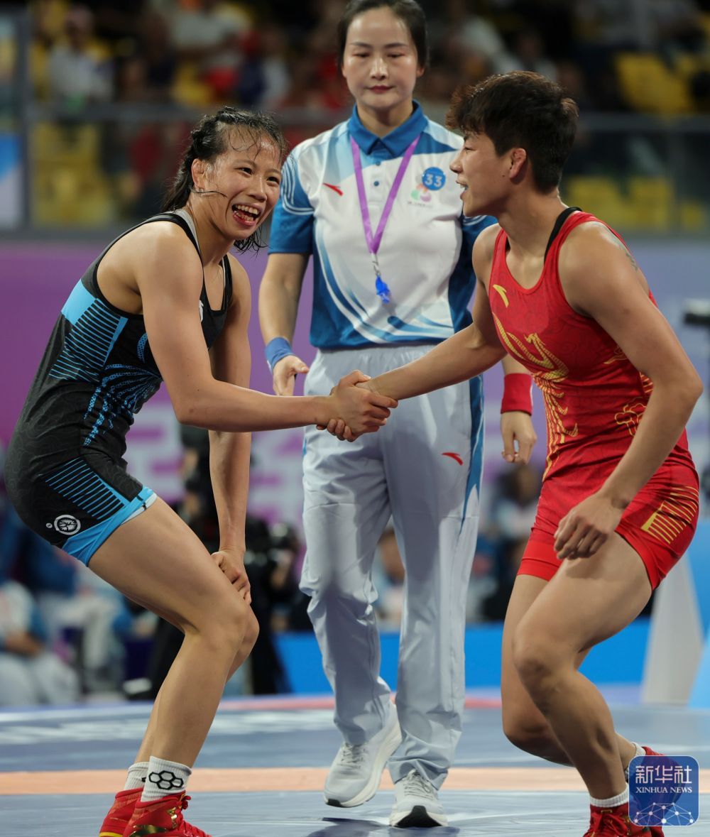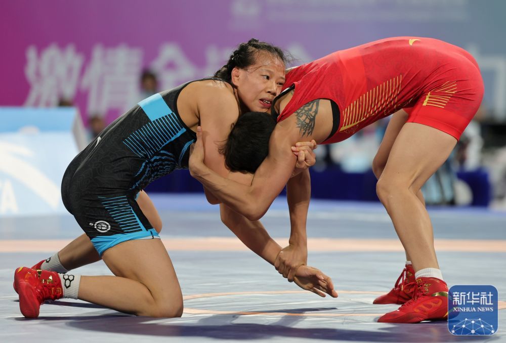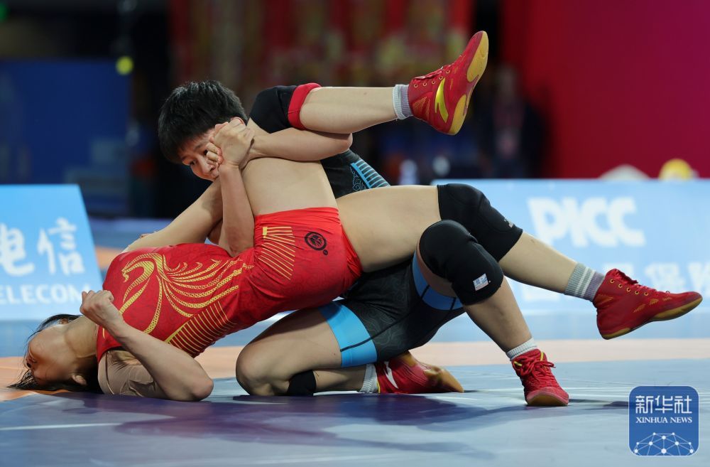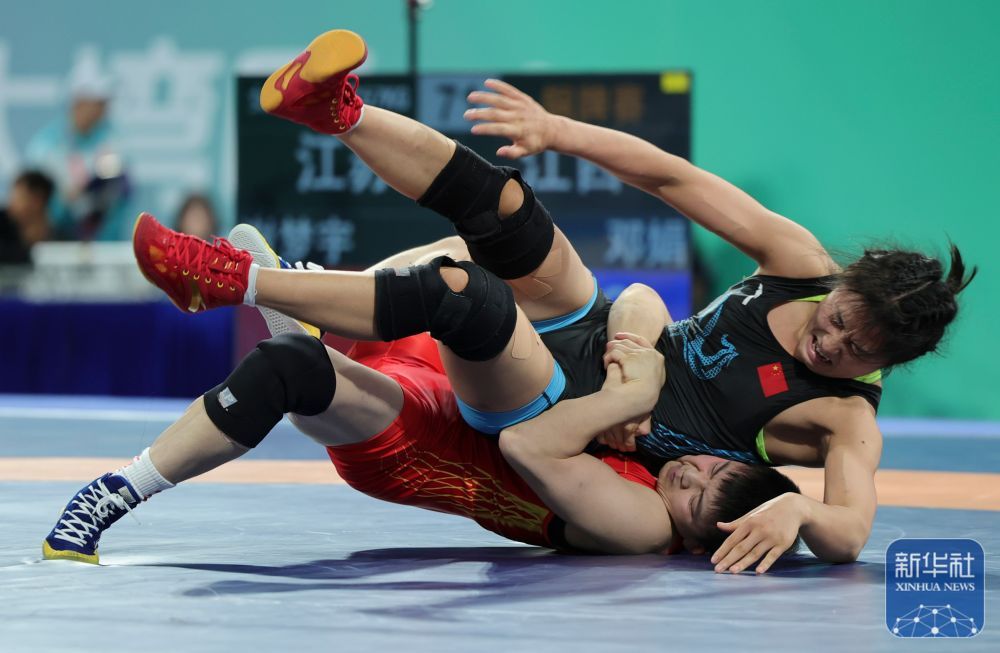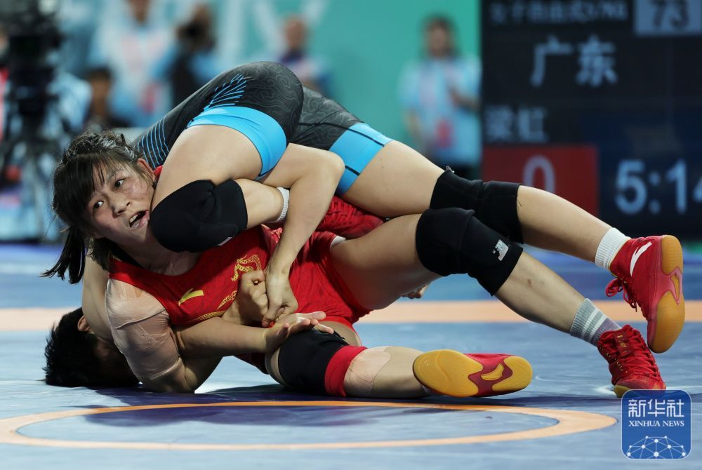 11月10日,第十五届全国运动会摔跤女子自由式57公斤级铜牌赛和决赛在广东清远举行。最终江苏队选手洪可新夺得冠军,广东队选手梁虹获得亚军,广东队选手冯咏欣和江苏队选手谢梦宇获得季军。