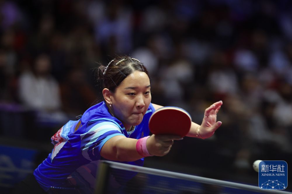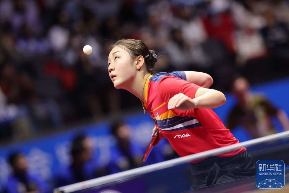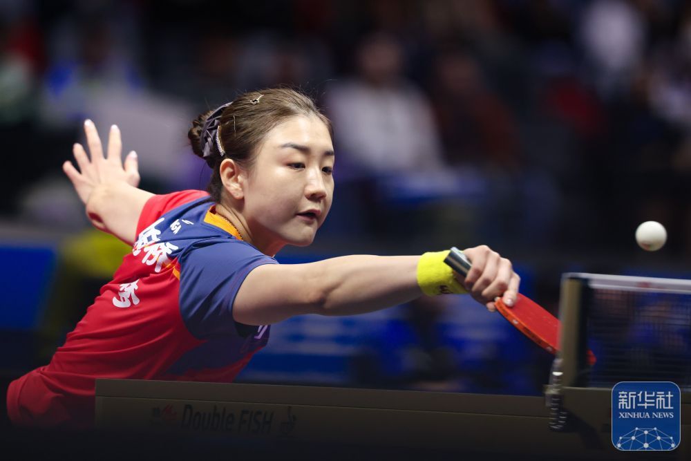 ↑陈梦在比赛中回球。新华社记者 刘续 摄