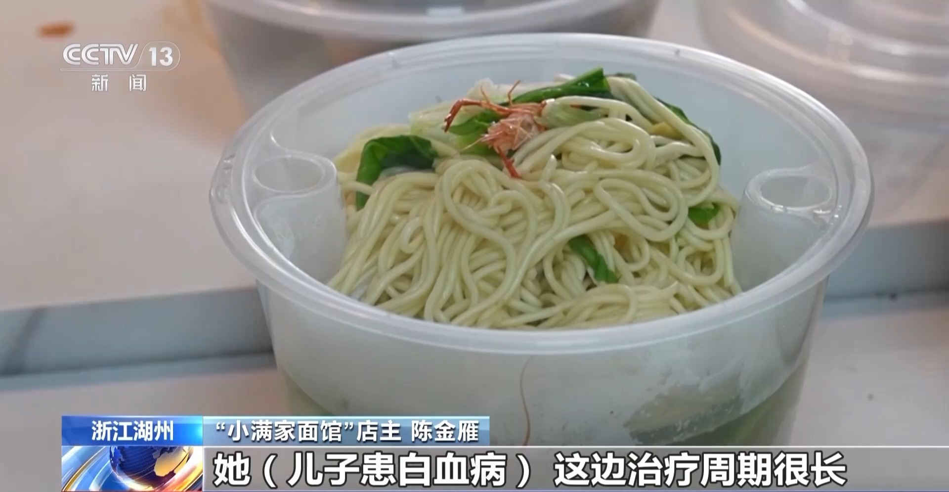 “小满家面馆”店主 陈金雁:她的要求比较多,少油少盐,叫我们煎蛋一定要给她煎全熟,后面我才知道她儿子患白血病,这边治疗周期很长,有一些和她一样的家长离不开小孩子,她说我把你拉到一个患者群里面。