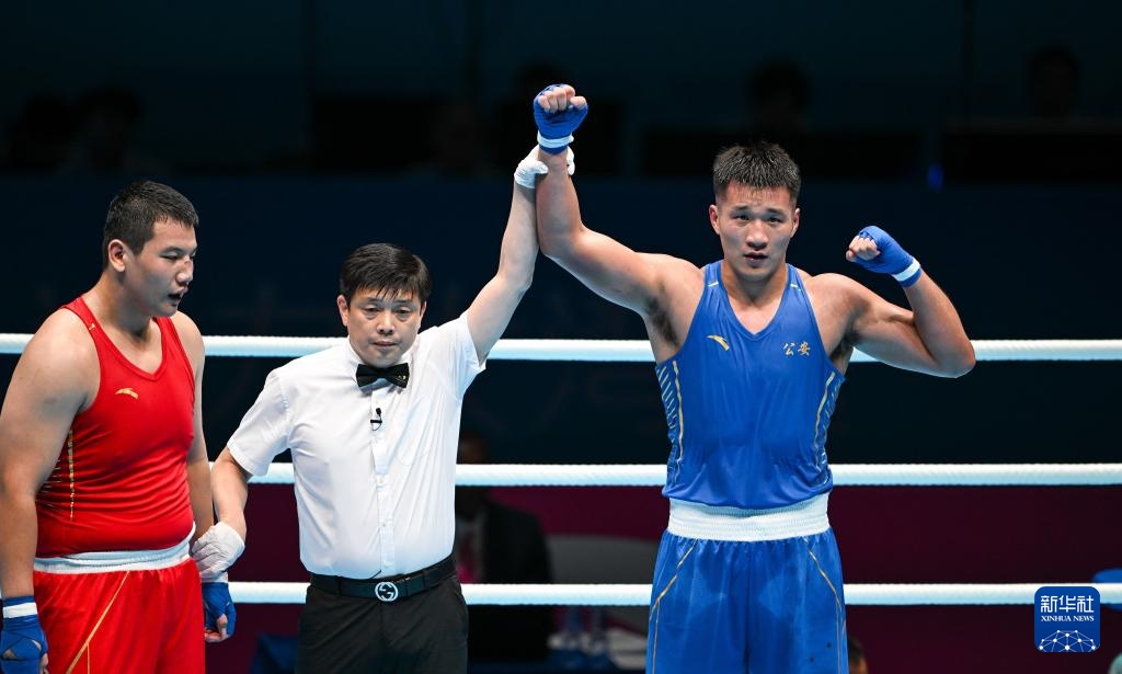 当日,在深圳进行的第十五届全国运动会拳击男子92公斤以上级半决赛中,中国公安体育协会队选手马金阳战胜煤矿体协队选手贾浩森,晋级决赛。
