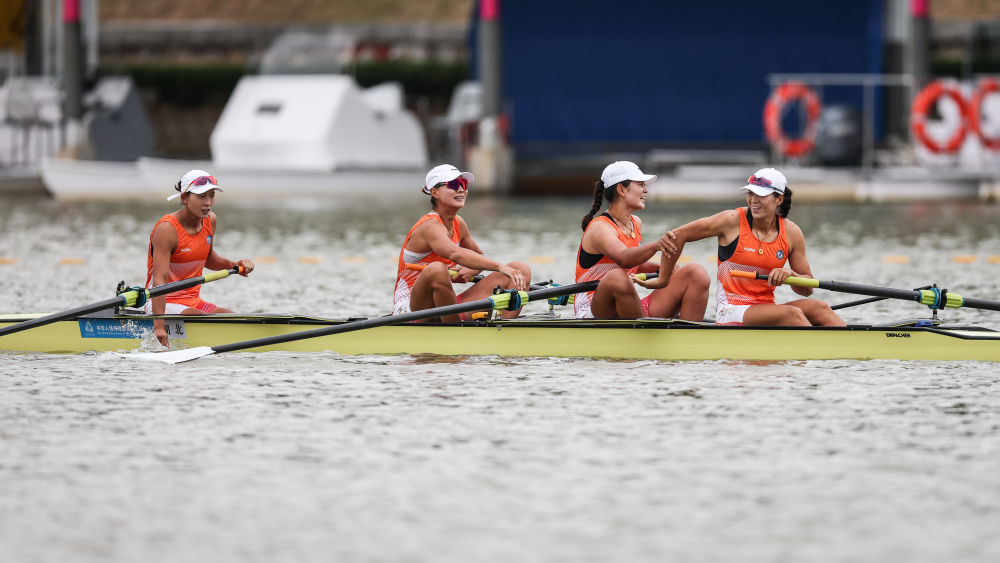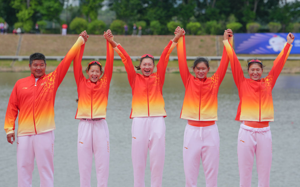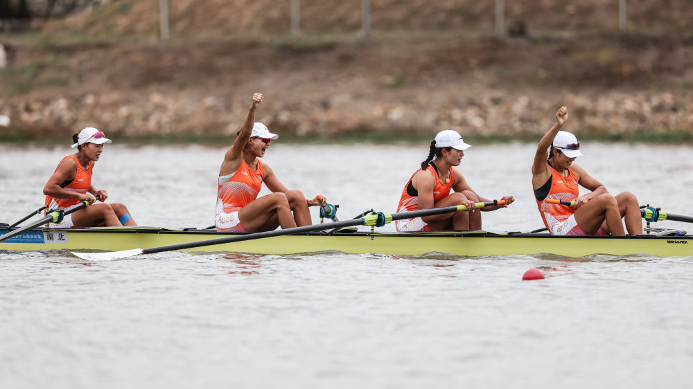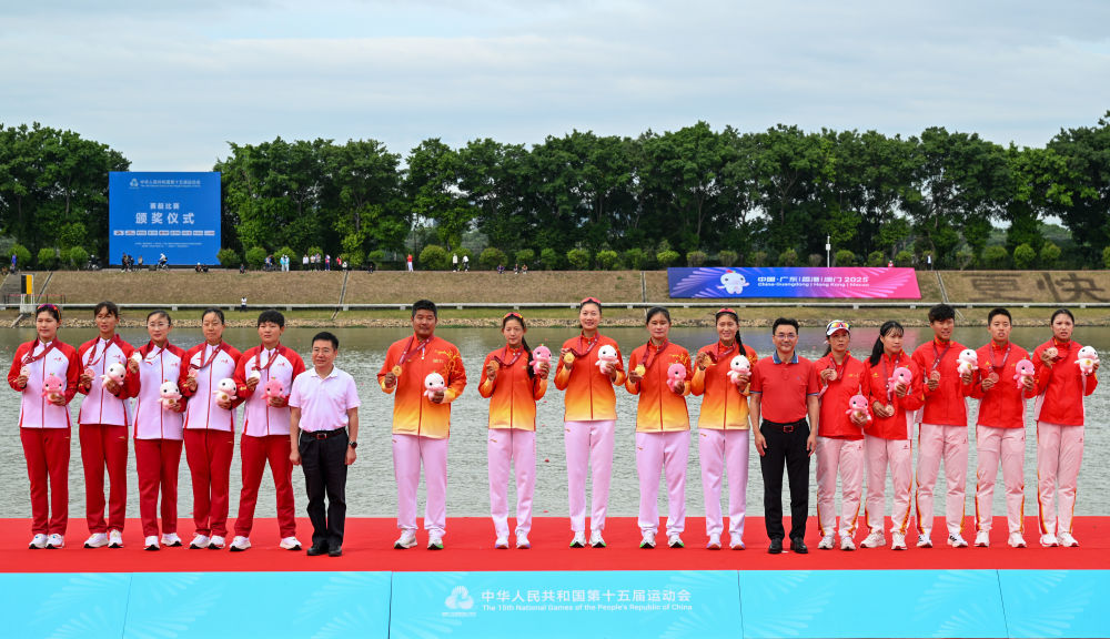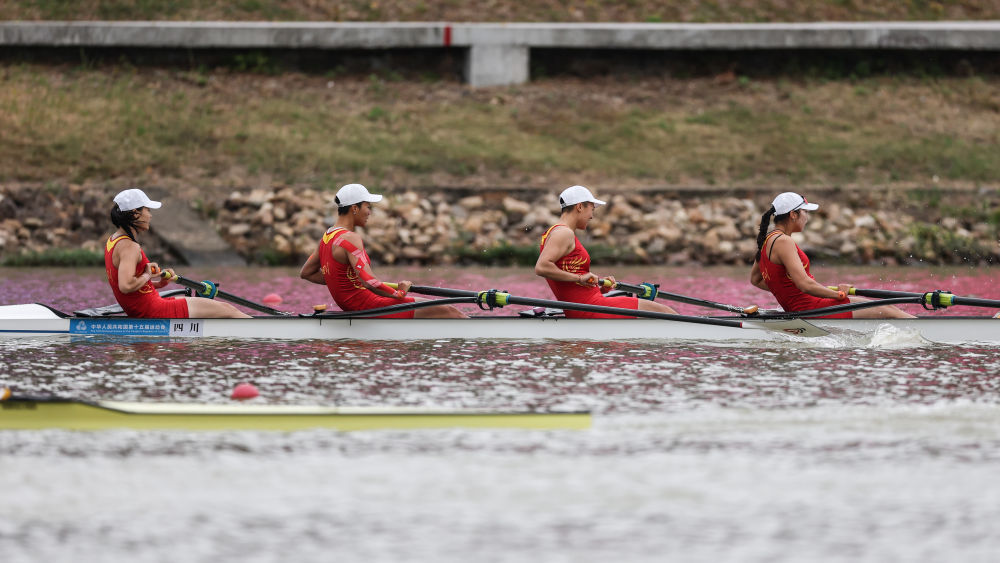 11月11日,第十五届全国运动会赛艇项目女子四人单桨决赛在广州举行,湖北队获得冠军,山东队获得亚军,四川队获得季军。