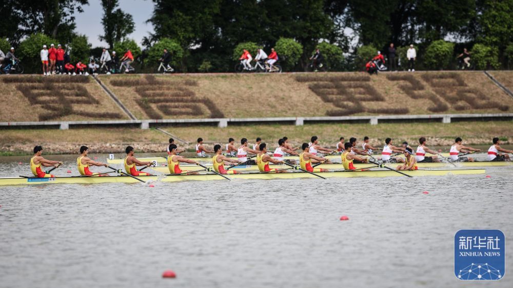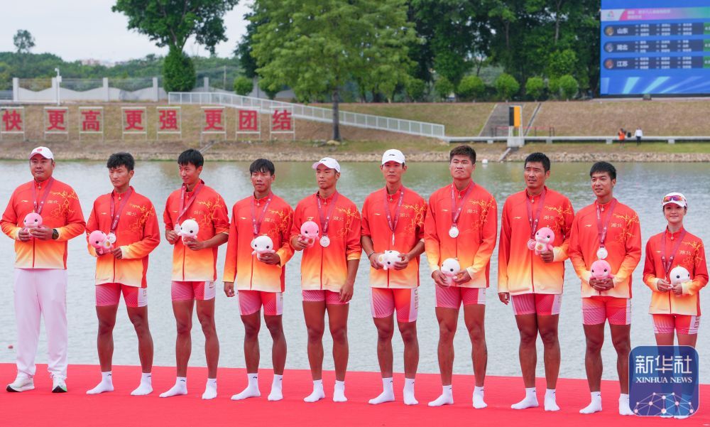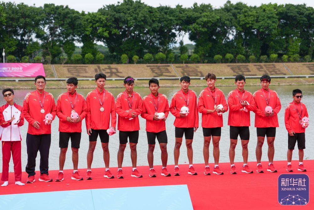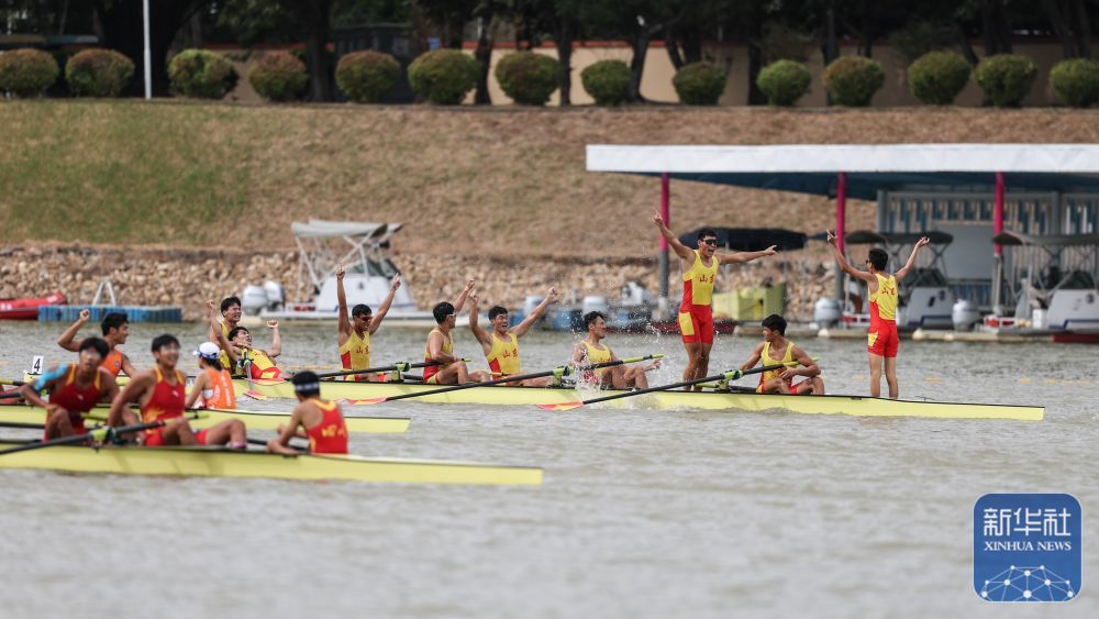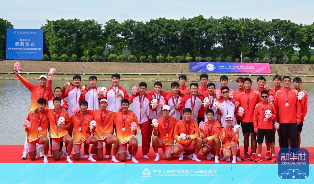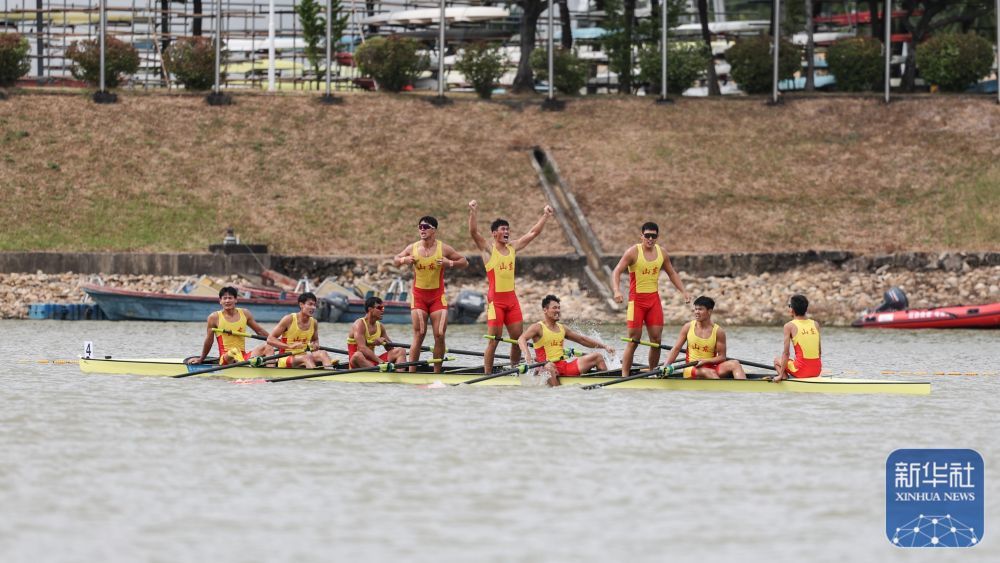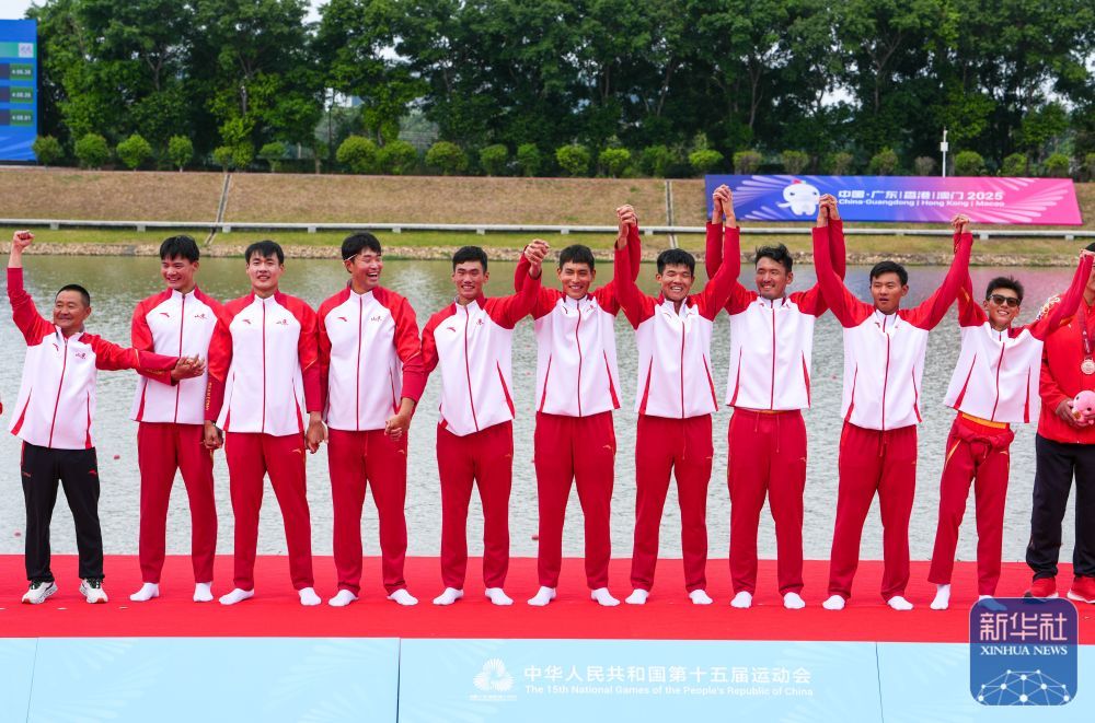 11月11日,第十五届全国运动会赛艇项目男子八人单桨有舵手决赛在广州举行,山东队获得冠军,湖北队获得亚军,江苏队获得季军。