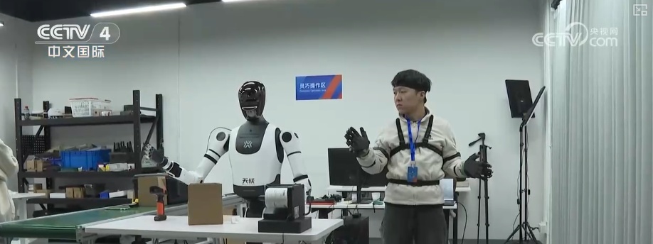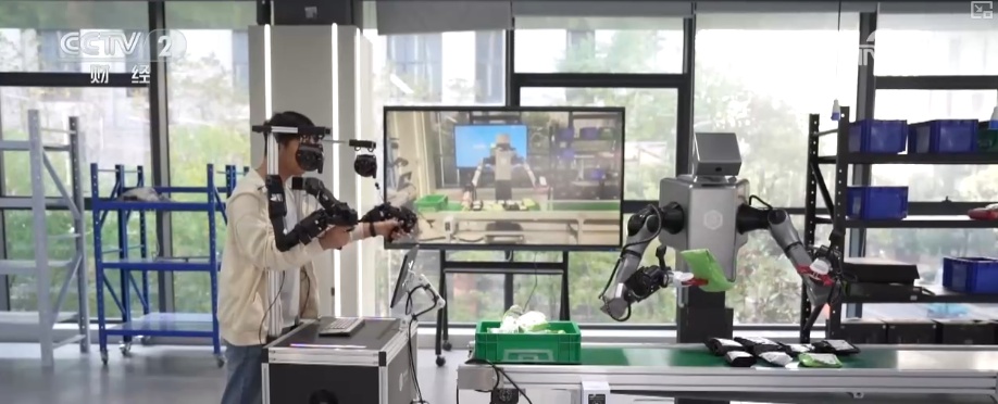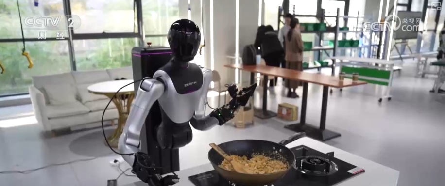 在安徽合肥具身智能机器人数据采集训练场,10台机器人正在工业生产、家庭服务等8个真实场景训练,完成炒菜、搬运、拧螺丝等精细操作。