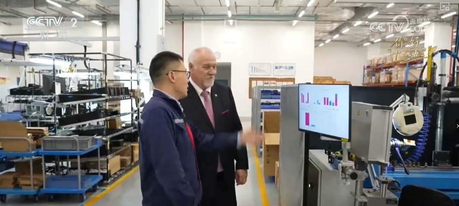 企业负责人侯永平介绍,这是注塑机,11月份它会集成机器人和主机、换模平台,传输带等整体打包去欧洲,整体打包提供给客户,这样缩短了交付周期。上半年,他们完成出口额7000万元,下半年预计还有80%的增长。