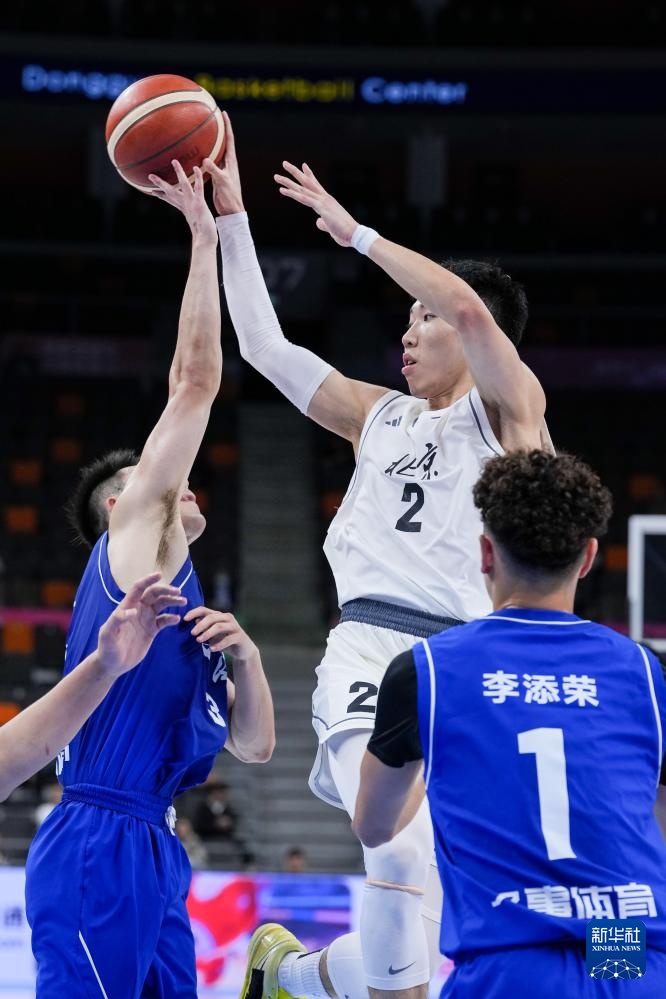 当日,在广东省东莞市举行的第十五届全国运动会篮球男子成年组排位赛中,北京队74比71战胜上海队。