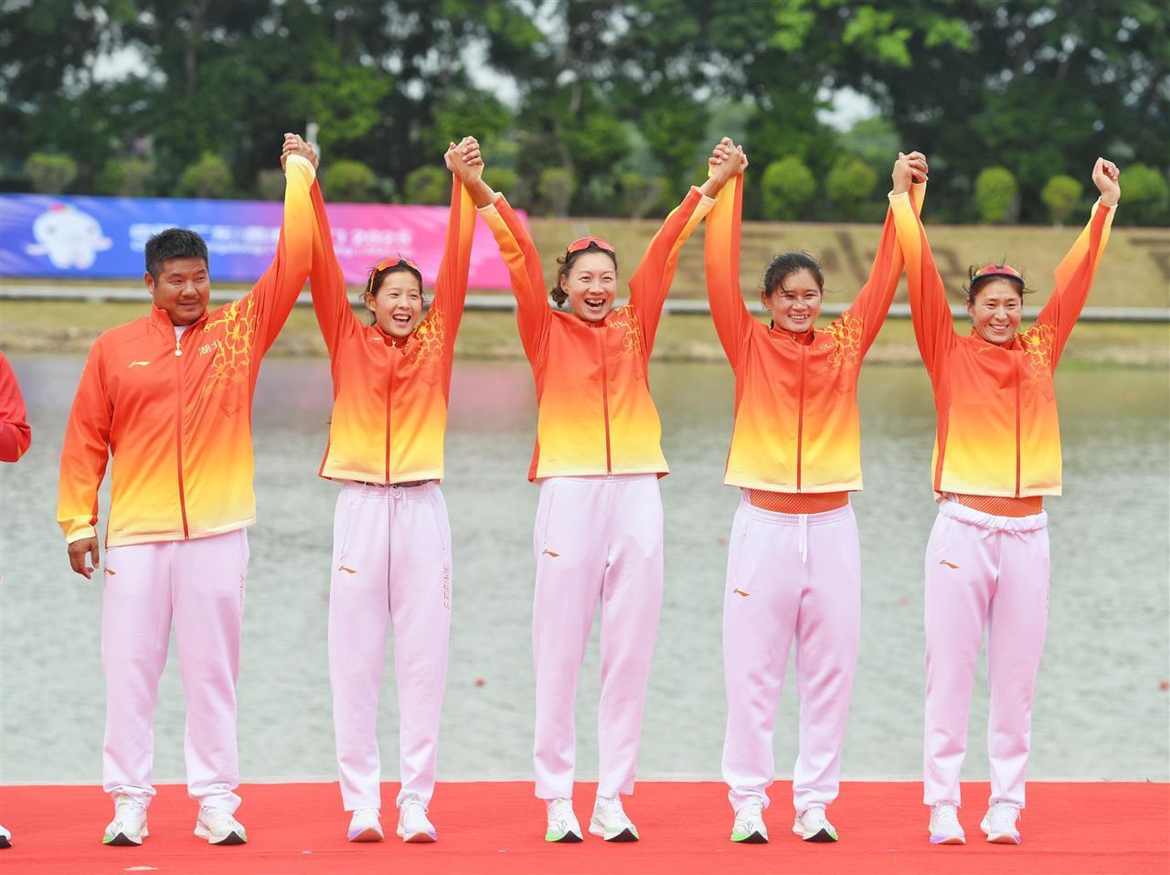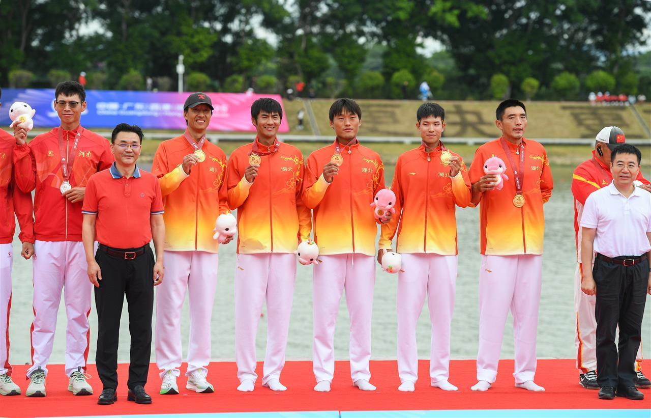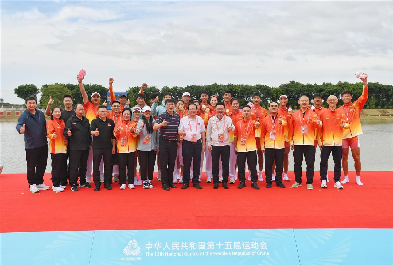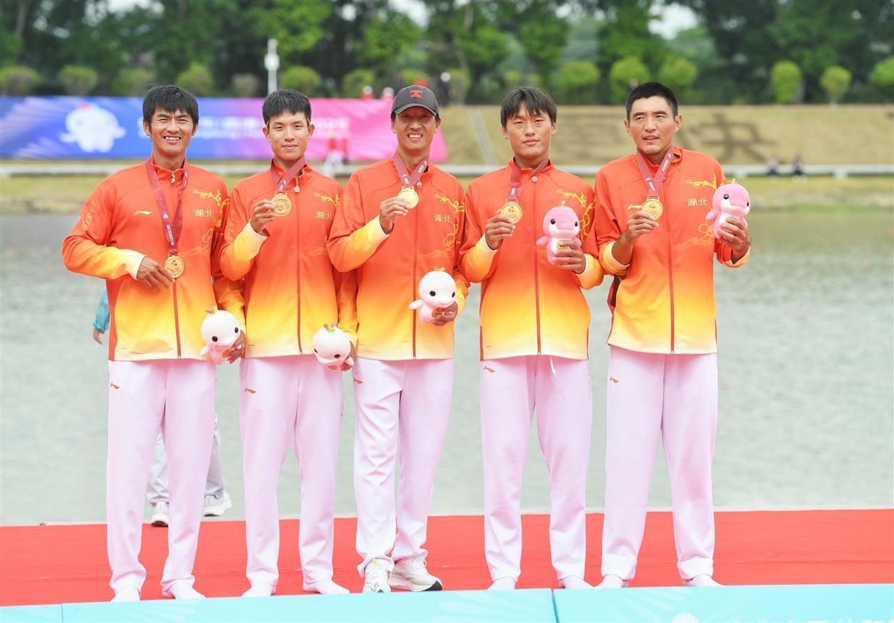 11月11日,第十五届全运会赛艇项目在广州市广东国际划船中心进行收官战。湖北队包揽男子四人单桨、女子四人单桨的两块金牌,还夺得了男子八人单桨有舵手银牌,以2金1银的好成绩,成为收官战上的大赢家。