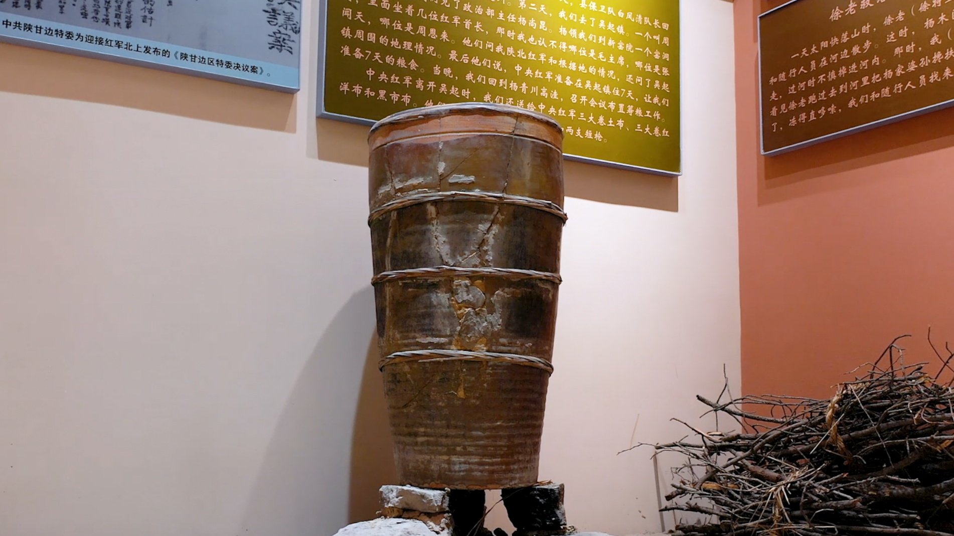 大家看这口缸,原件是国家三级文物“红军锅”。这是当年红军赔了两块银元的“天价锅”。中央红军到达吴起镇时,做饭没有锅,就向当地村民借了这口缸来做饭。红军的食物是难熟的黑豆、荞麦,火一大,饭没煮熟,缸却烧裂了几道口子。这只是长征路上无数艰难险阻的一个缩影。“苦不苦,想想长征两万五。累不累,想想革命老前辈。”苦难铸就辉煌,经过饿其体肤,苦其心志,前辈们接住了天降大任。他们不仅克服了生存困难,而且升华了思想和修养,使这山沟里不仅有马克思主义,而且有文采风骚。长征精神的底色就是不怕苦、不畏难,毛主席《七律·长征》第一句就是“红军不怕远征难”,怕苦就会当逃兵,不怕苦才能踏尽坎坷,才能感受万水千山只等闲。这个精神在人民军队得到了很好的传承。不久前的阅兵,激励战士们的口号仍然是从这里延伸出来的:“苦不苦,想想民族屈辱!累不累,想想抗战先辈!”