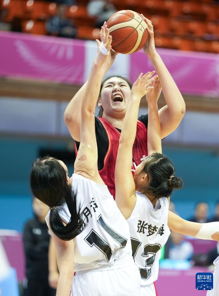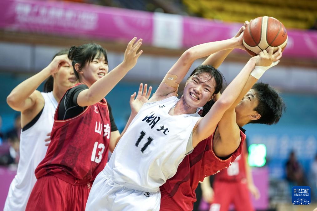 11月11日,湖北队球员杨月洁(右二)在比赛中拼抢。