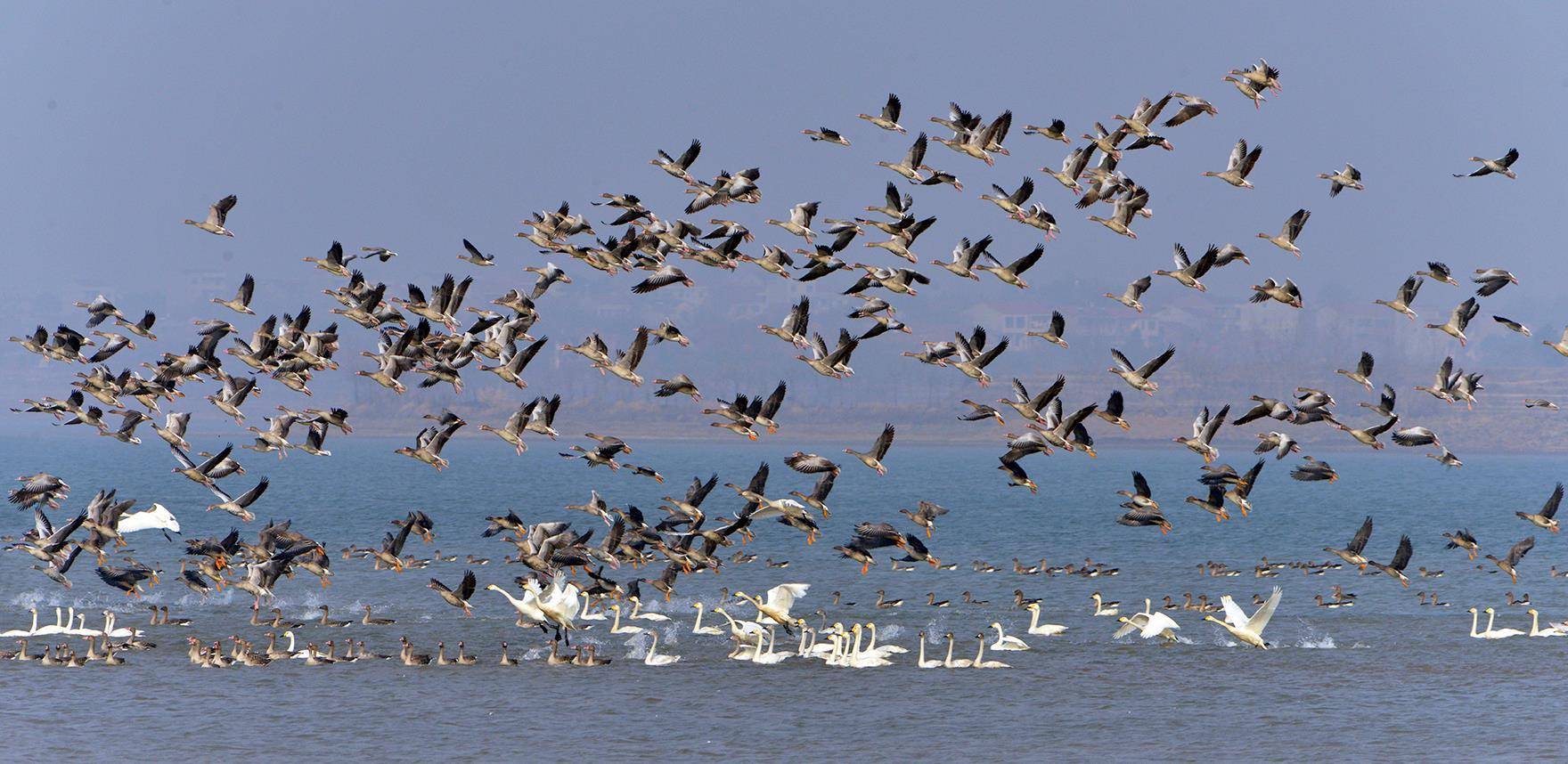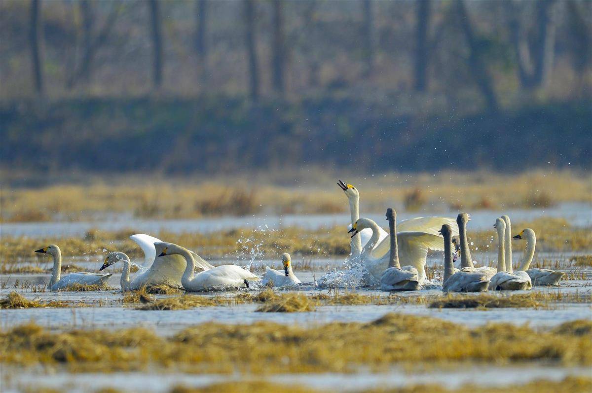 每年约有十几万只候鸟在此停歇越冬,为这片湿地注入源源生机。目前,黑鹳、小白鹭、灰雁等鸟类的迁徙活动仍在持续,预计将持续至明年3月。