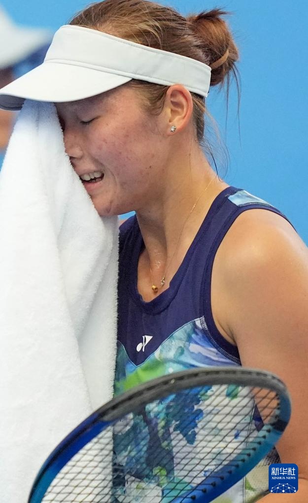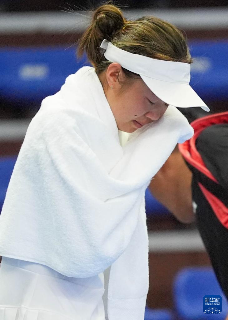 11月11日,浙江队选手邹瑞瑞在比赛中擦汗。她0比2不敌北京队选手施晗。