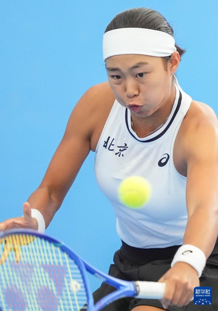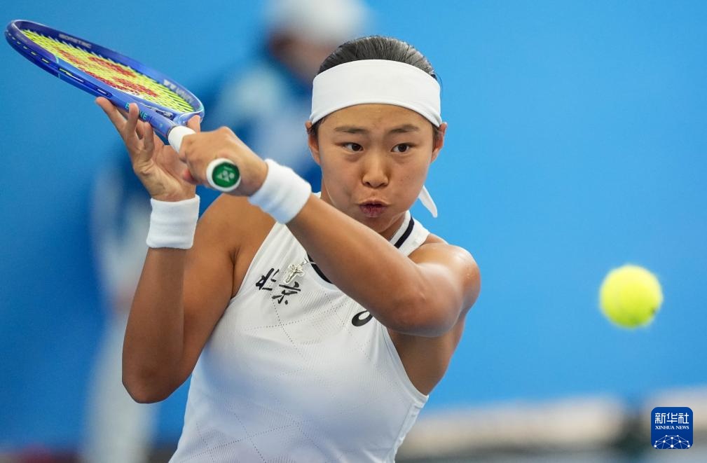 11月11日,北京队选手张瑞恩在单打比赛中回球。她0比2不敌浙江队选手渠依含。