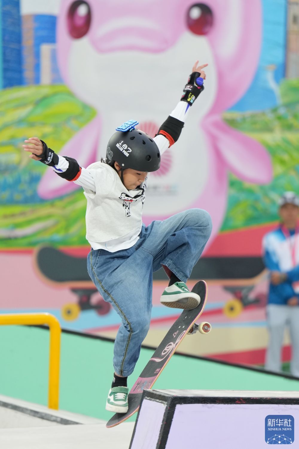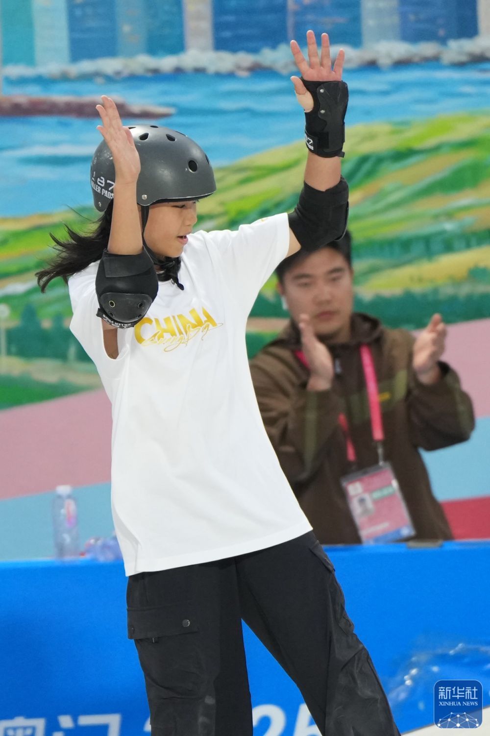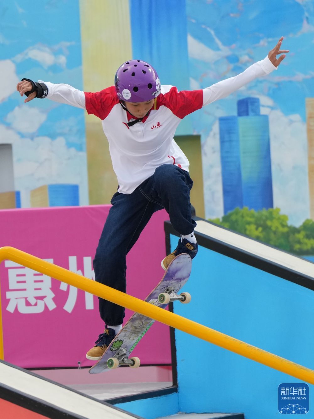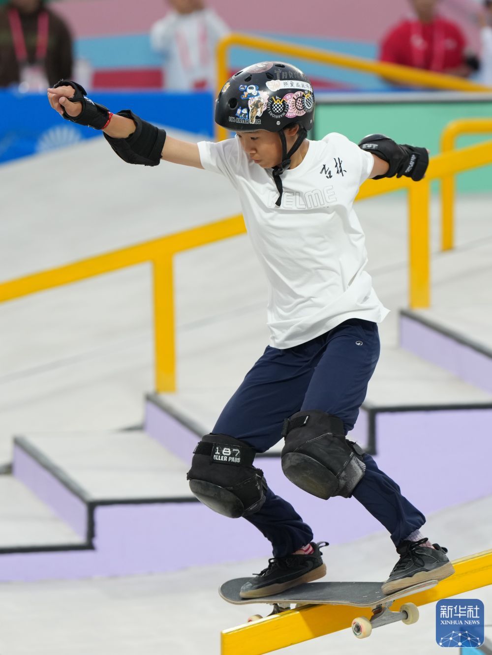 11月11日,第十五届全国运动会滑板项目女子街式赛决赛在广东惠州举行。