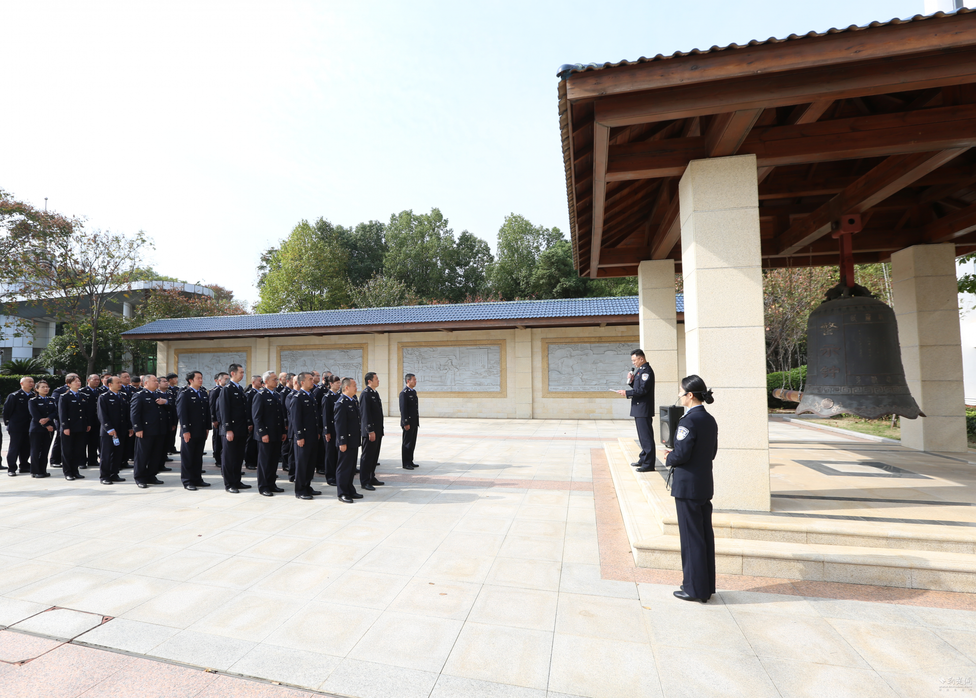 前车之鉴犹在,警示之钟常鸣。在廉政文化广场,党员民警庄严肃立,民警代表郑重敲响警钟,三声警钟警示大家党纪国法的威严不容侵犯,必须以警惕之心抵御诱惑,以敬畏之心行使权力,以赤诚之心对待事业,方能守护好个人自由、家庭幸福以及象征责任与荣光的“藏蓝”底色。