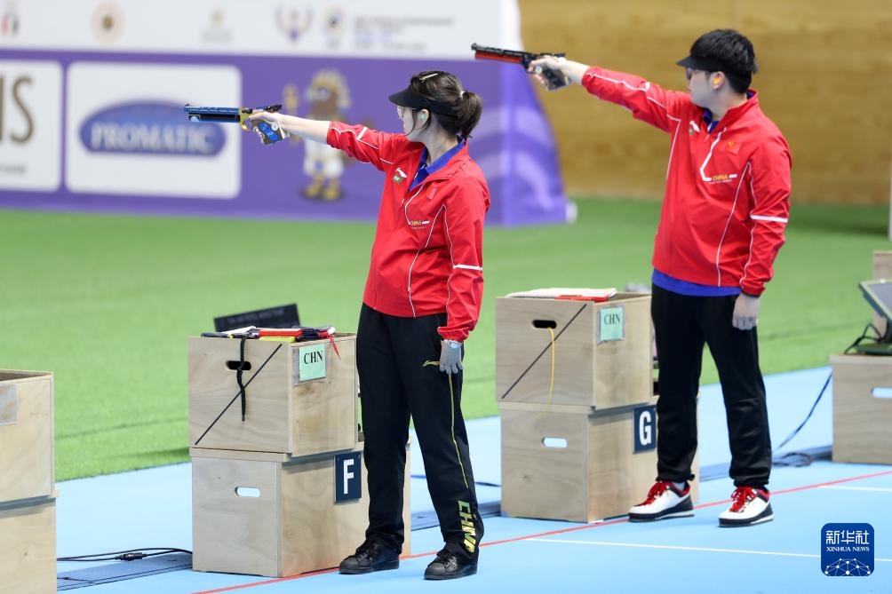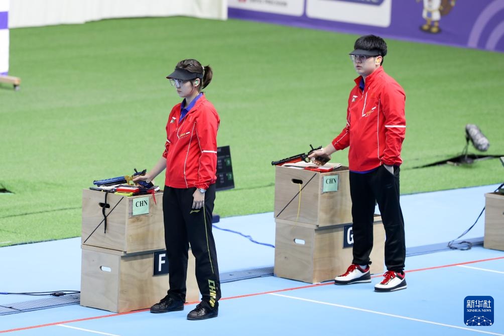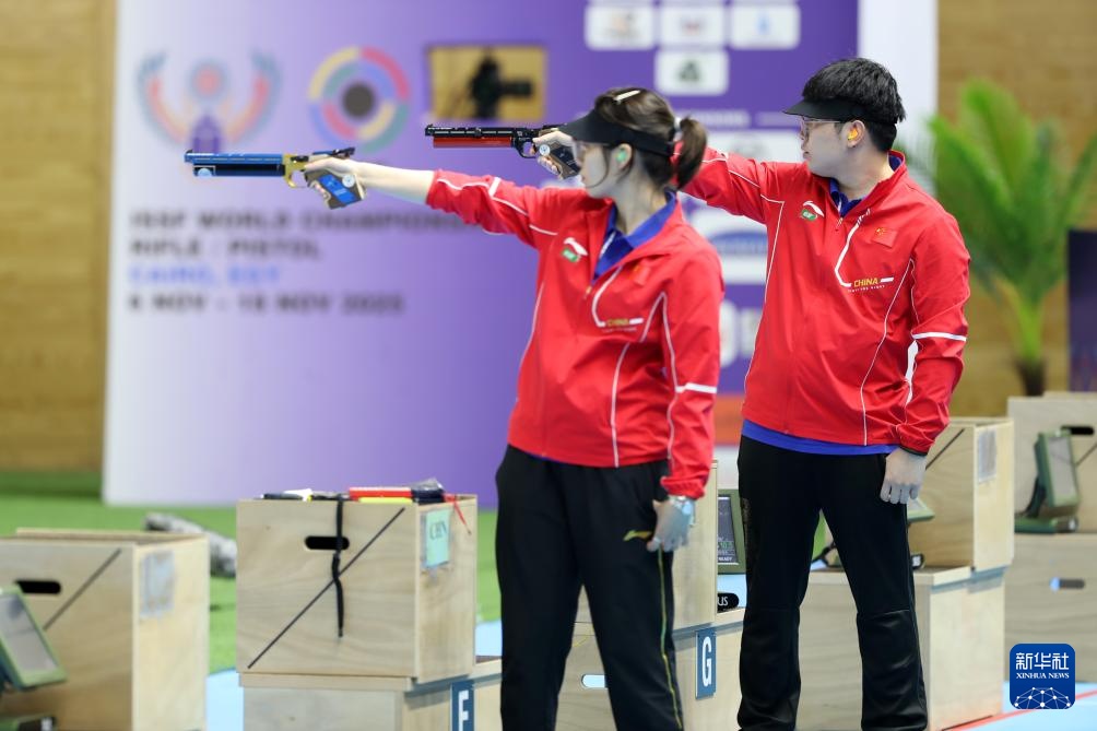 当日,在埃及开罗举行的2025年国际射联步手枪射击世锦赛10米气手枪混合团体决赛中,中国组合姚千寻/胡凯获得冠军。