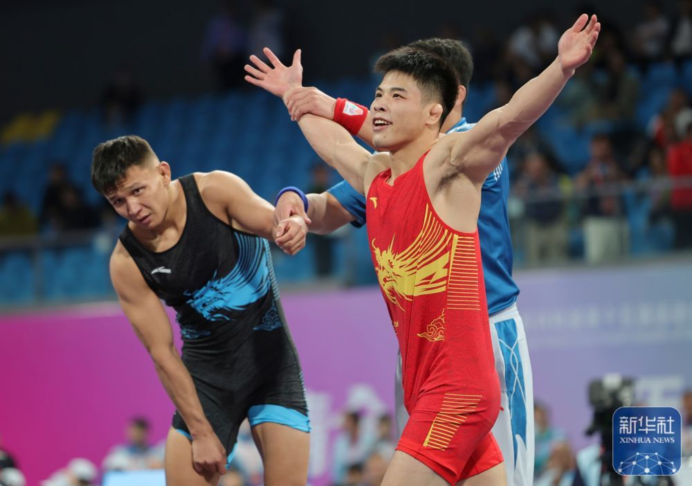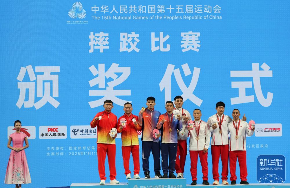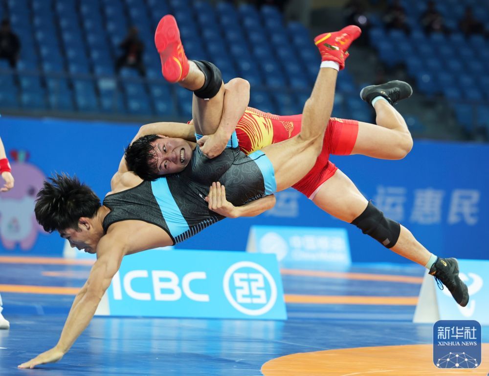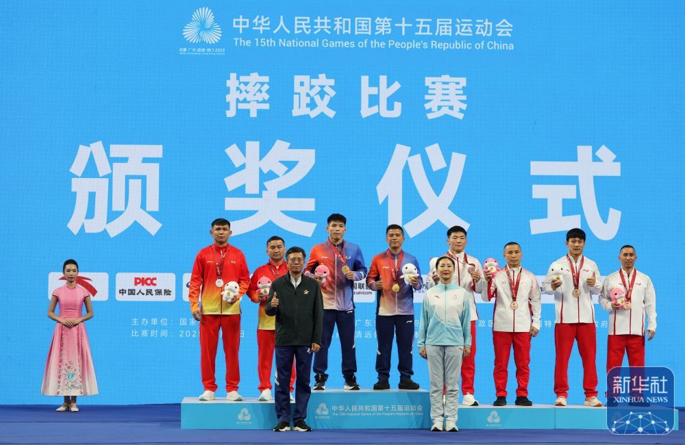 11月11日,第十五届全国运动会摔跤男子自由式74公斤级比赛在广东清远举行。广西队选手陆锋夺得冠军。