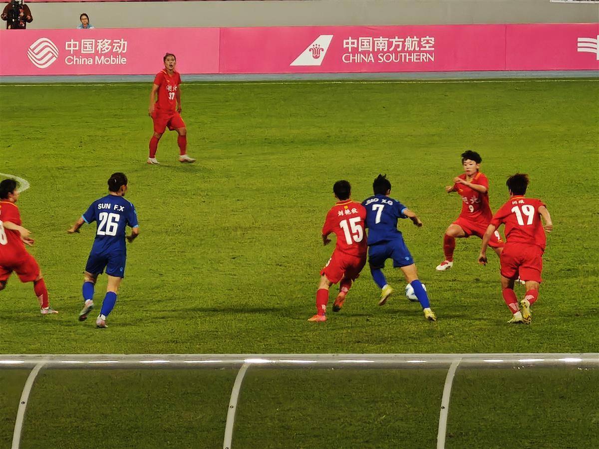 11月11日晚,在顺德德胜体育中心进行的十五运会女足成年组1/4决赛中,湖北女足以2比1战胜山东,历史上第一次杀进全运会四强。