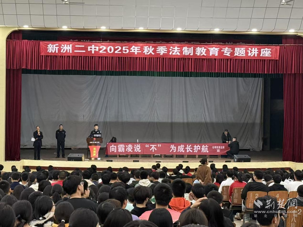 荆楚网(湖北日报网)讯(记者 白云 通讯员 王冠迦)11月7日下午,新洲二中校园礼堂内气氛热烈,一场以“阳光下的守护”为主题的法治宣传活动在这里展开。为提升辖区师生的法治意识,长江新区公安分局仓埠街派出所组织民警走进该校,为高一学生带来了一堂别开生面的法治宣讲公开课。