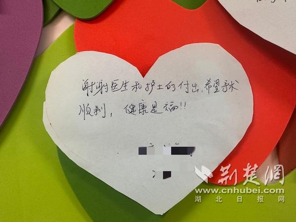 在武汉市中心医院杨春湖院区的心血管内科病房有一颗“希望树”,患者或家属在术前都会将自己对手术的心愿和健康的美好向往写在一个心型的叶子贴纸上,然后贴在“希望树”上。前日上午,林阿姨在贴纸上写下“谢谢医生护士的付出,希望手术顺利,健康是福!”并邀请黄贤娜护士长和管床护士张夏纯一起贴在“希望树”上。