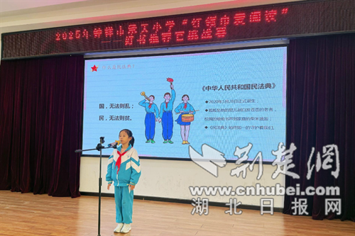 决赛现场,小选手们用创意与热情点亮阅读之光。作为“故事演绎家”,他们声情并茂还原《小英雄雨来》经典桥段,生动语言将革命小英雄的果敢无畏刻画得入木三分;身为“知识解码师”,他们以思维导图拆解《中华人民共和国民法典》趣味法条,把枯燥条文转化为直观图文,让法律知识“活”起来、“动”起来;化身“情感朗读者”,他们深情诵读《可爱的中国》选段,字里行间的家国赤诚直抵人心,引发全场共鸣,掌声经久不息。