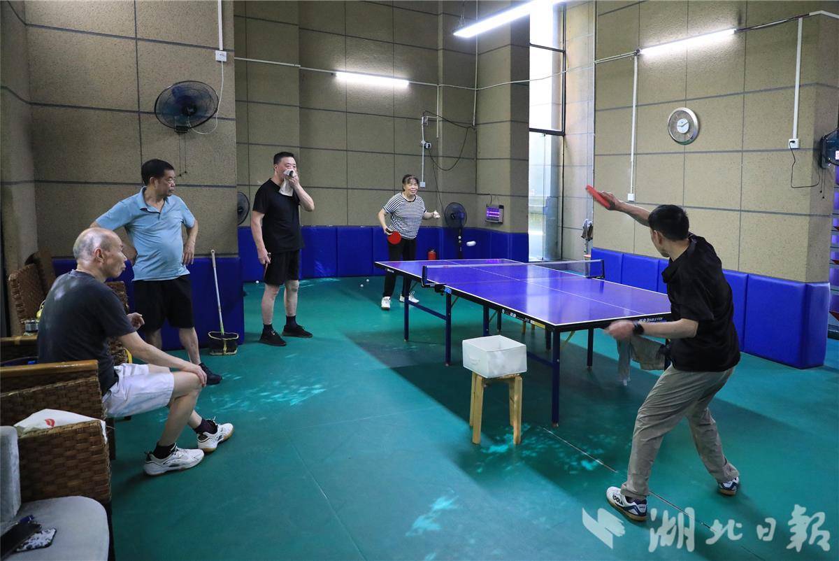 武昌绿地小区架空层——居民正在进行乒乓球对决。(通讯员肖敏摄)