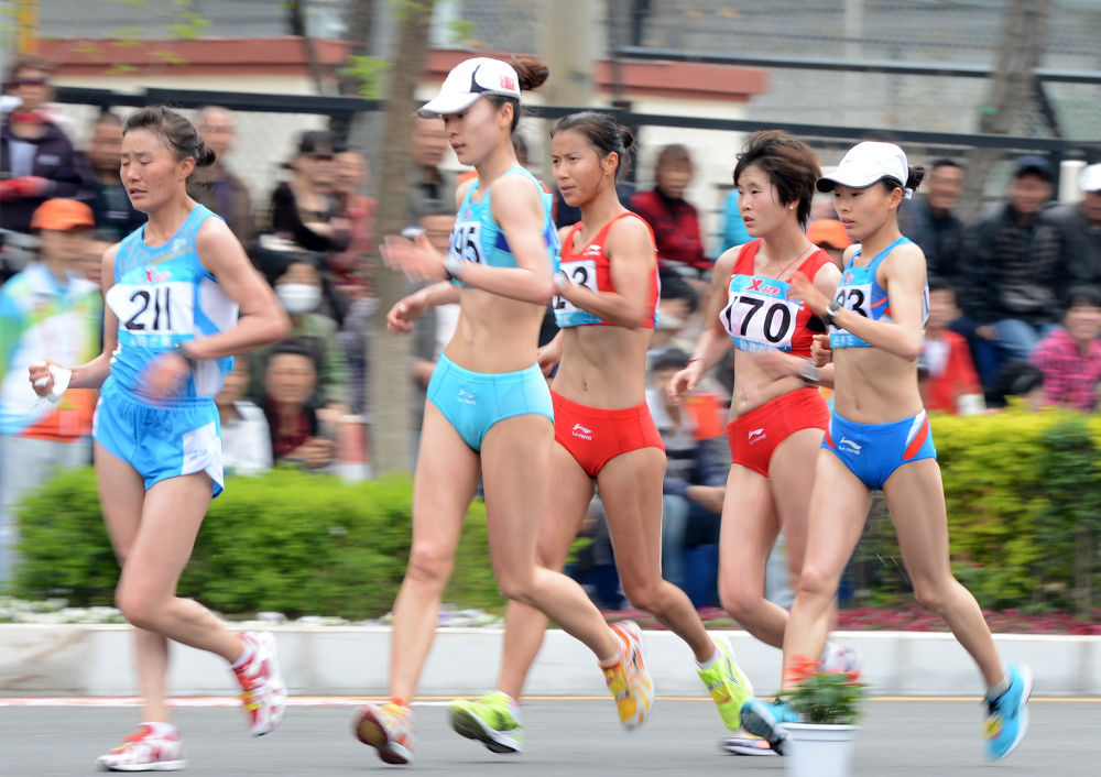 2013年5月11日,广东队选手刘虹(左三)在第十二届全国运动会田径女子20公里竞走决赛中。