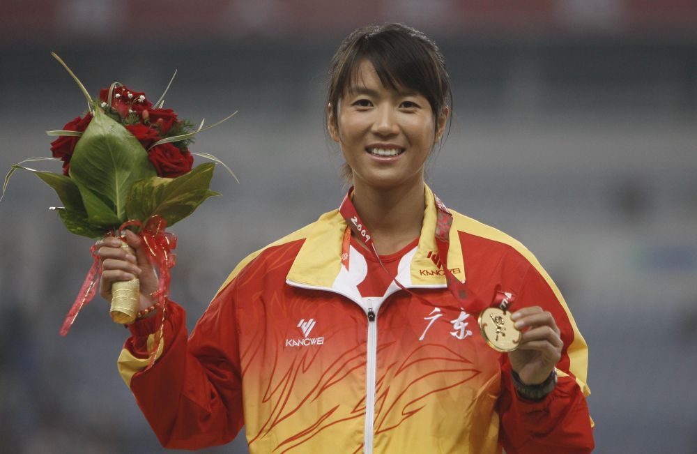 2009年10月24日,广东队选手刘虹在第十一届全国运动会田径女子20公里竞走颁奖仪式上。