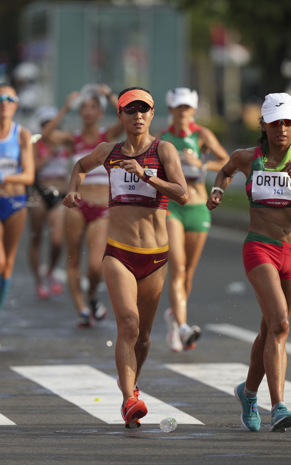 2021年8月5日,刘虹在东京奥运会田径女子20公里竞走决赛中。