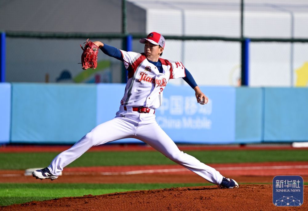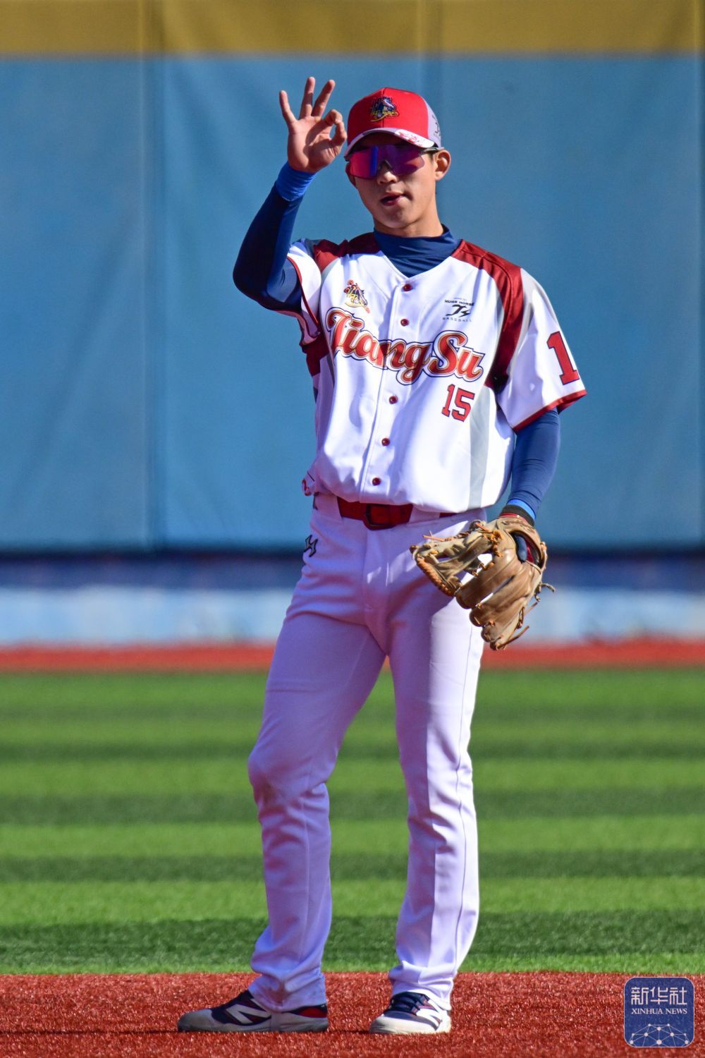 11月12日,在广东省中山市举行的第十五届全国运动会棒球小组赛A组比赛中,江苏队8比3战胜山东队。