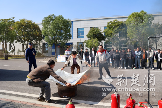 企业员工体验使用灭火毯扑灭火灾。通讯员 供图