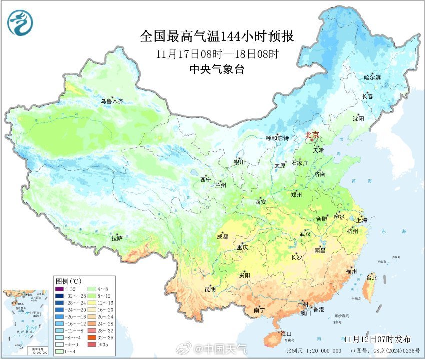 黄淮地区气温骤降和过程最低点出现在下周一,南方也会从下周一开始明显降温,南京、武汉、上海、贵阳周日最高气温还都在20℃以上,下周一大幅下跌,下周二最高气温普遍不足10℃,福州会从27℃降到16℃,各地冷暖变换剧烈,注意及时调整穿着。