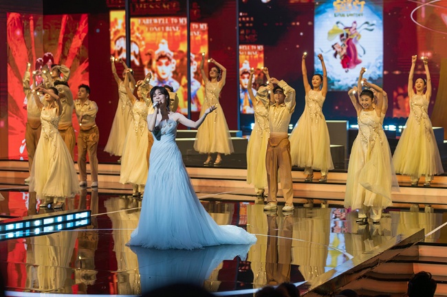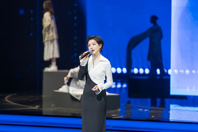 11月11日,2025中国金鸡百花电影节在厦门开幕。开幕式上,歌手郁可唯演唱中国金鸡百花电影节主题曲《光影人间》,致敬中国电影诞生120周年。新华网记者 钟奕摄