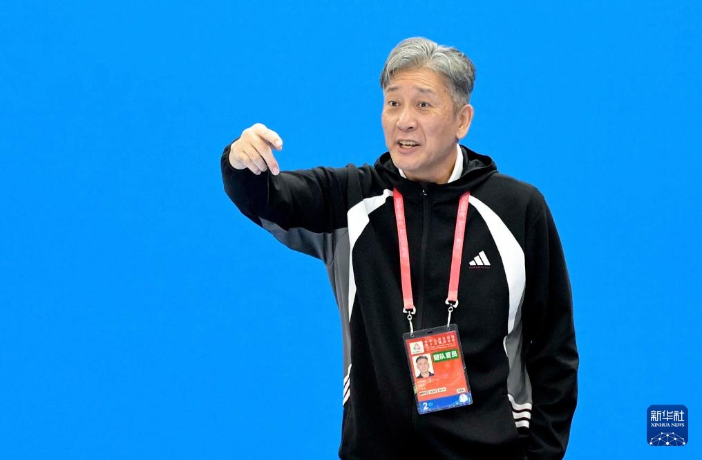 11月12日,广东队主教练郑永刚 (右)在比赛中指导球员。
