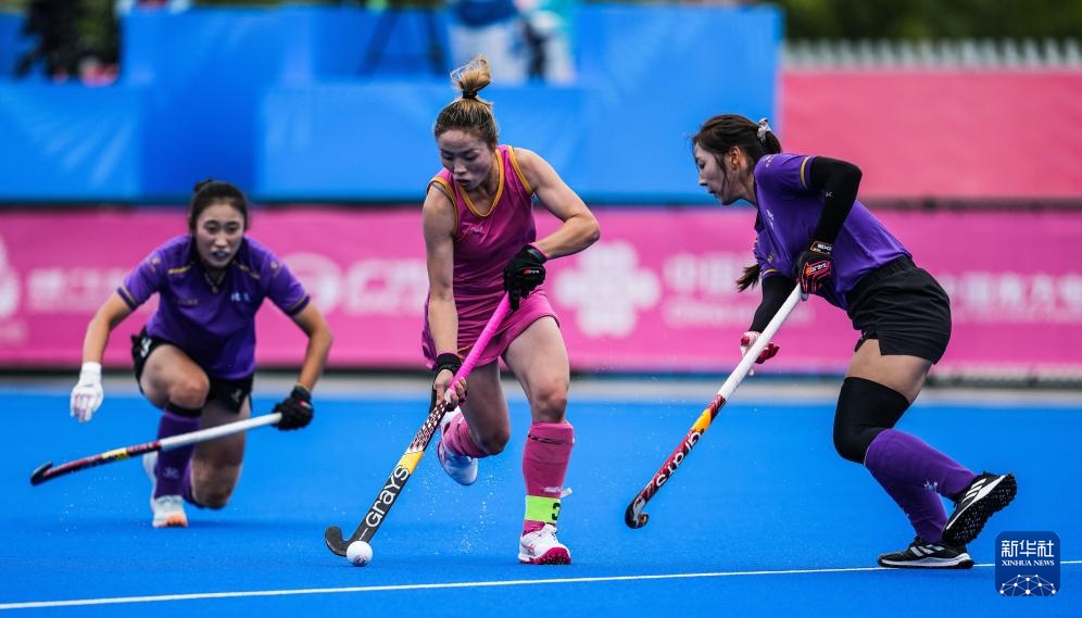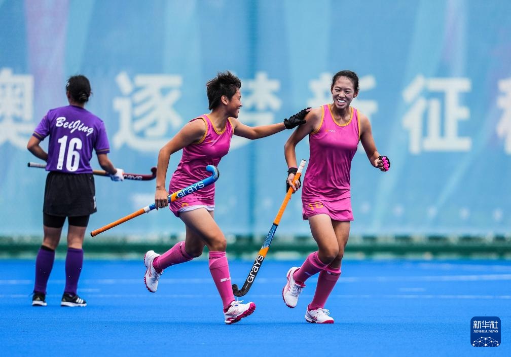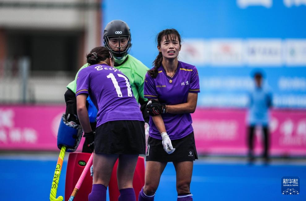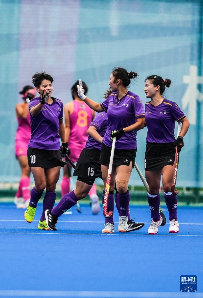 当日,在广东省云浮市举行的第十五届全国运动会女子曲棍球5-8排位赛中,北京队3比2战胜重庆队。