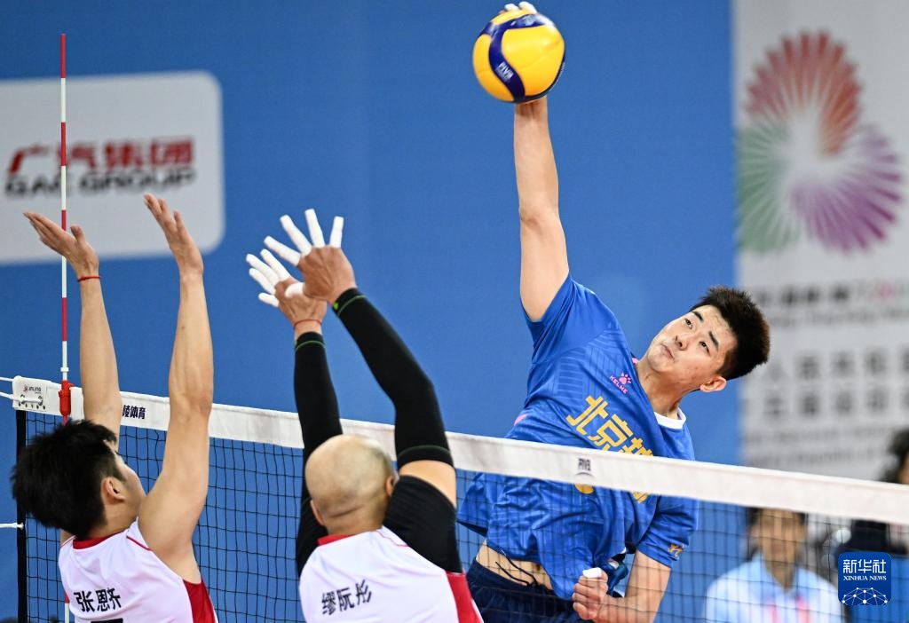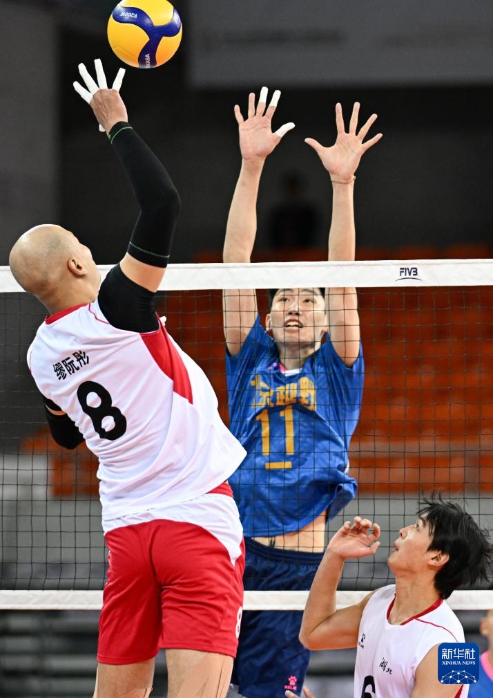 当日,在广东江门举行的第十五届全国运动会排球男子成年组小组赛B组比赛中,北京队3比0战胜湖北队。