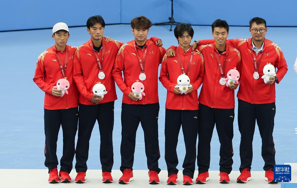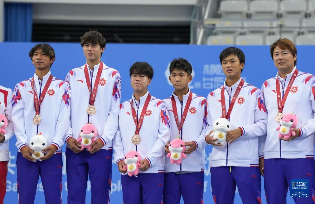 11月12日,(从左到右)亚军江苏队、冠军北京队、并列季军香港队和广西队在颁奖仪式上。