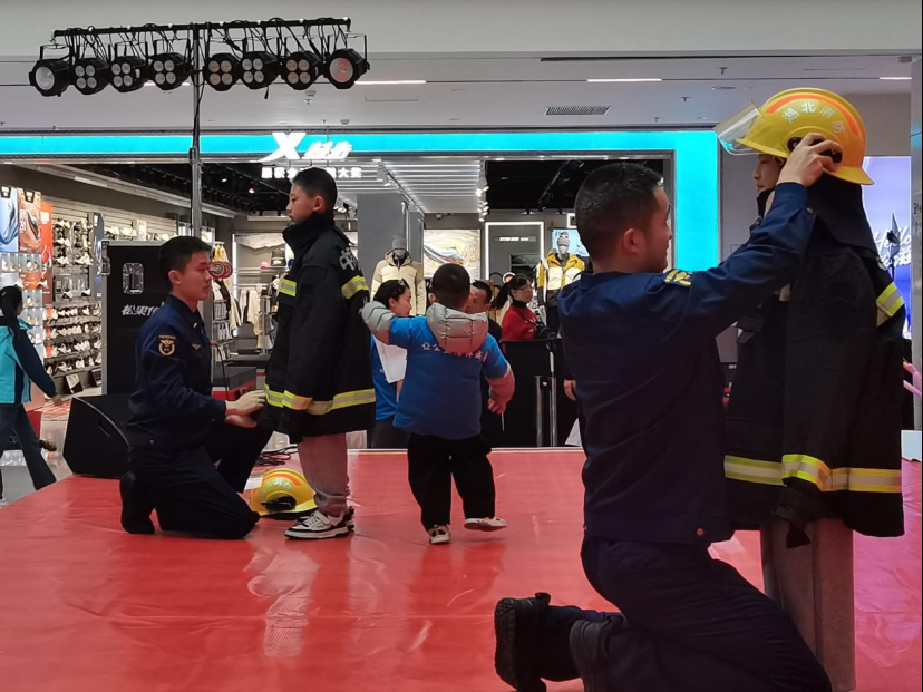 当威武的消防战斗服亮相时,瞬间点燃了全场孩子们的热情。在宣传员的专业指导下,孩子们依次穿上消防战斗服,戴上消防头盔,化身成一个个神采奕奕的“小小消防员”。活动的最后,全体小朋友与消防员们共同合影留念,将这段富有教育意义的经历定格为永恒的记忆。