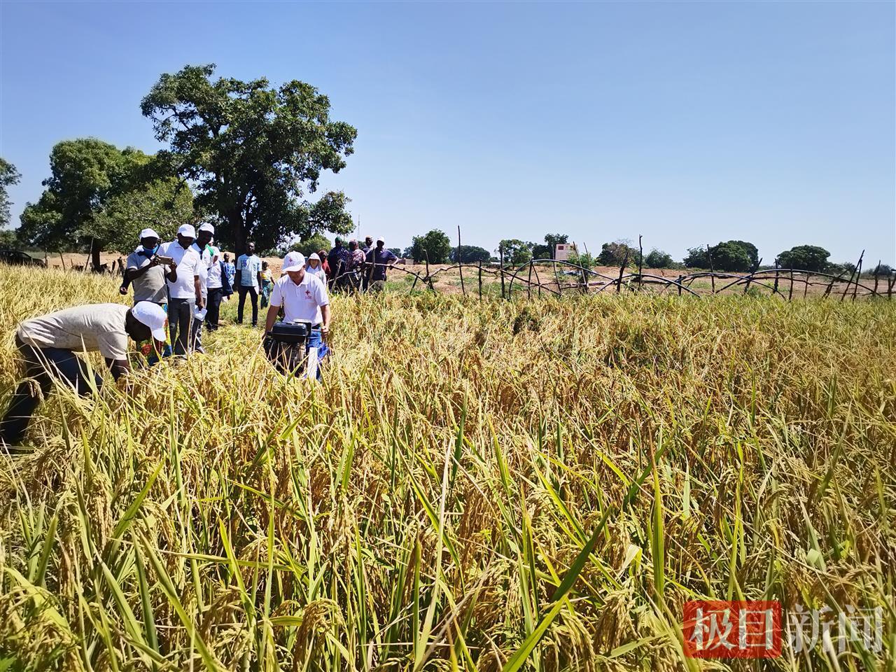 中国援建的布尔比中国水稻品种展示区一片丰收景象