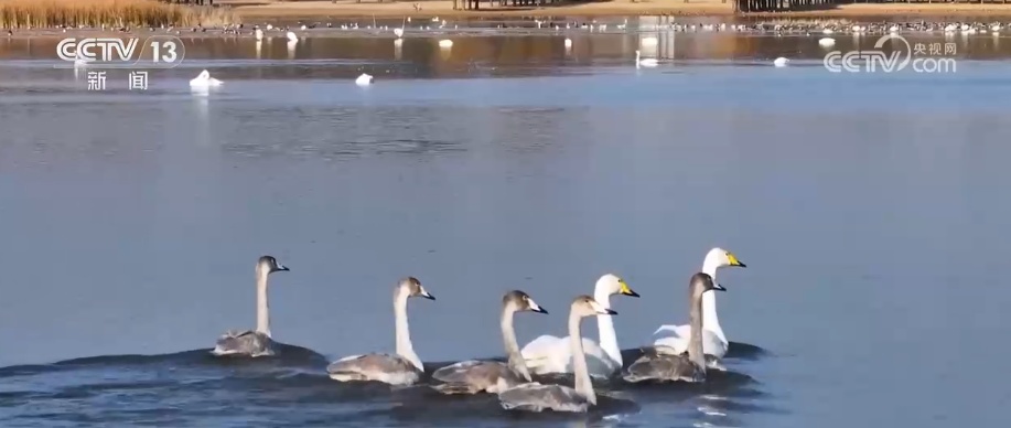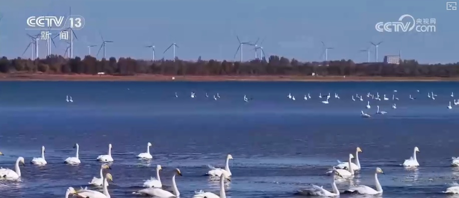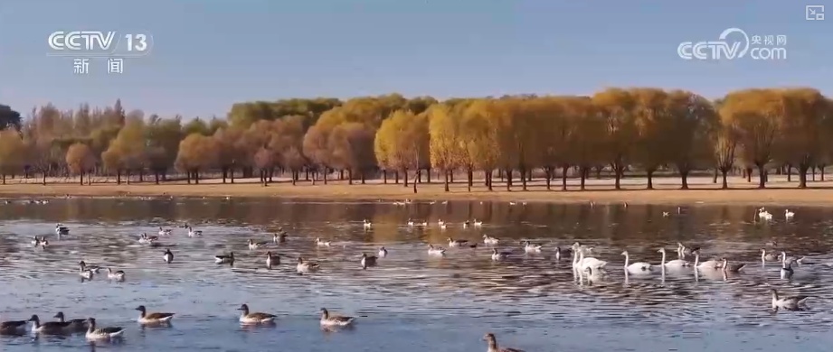 在中国最大的沙漠淡水湖,红碱淖国家级自然保护区内,芦苇金黄、湖水碧蓝、万羽翔集,共同构成一幅美丽的生态画卷。监测数据显示,区域内天鹅、鸿雁、赤麻鸭等迁徙鸟类数量已达近4万只,迎来年度峰值,相比往年同期候鸟数量稳步提升。