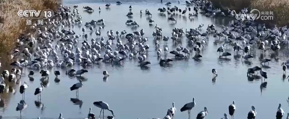 河北唐山曹妃甸湿地作为候鸟迁徙重要停歇点。眼下,正迎来迁徙高峰,近百万只候鸟在此休整觅食,其中还有不少“鸟中大熊猫”——国家一级保护动物东方白鹳。