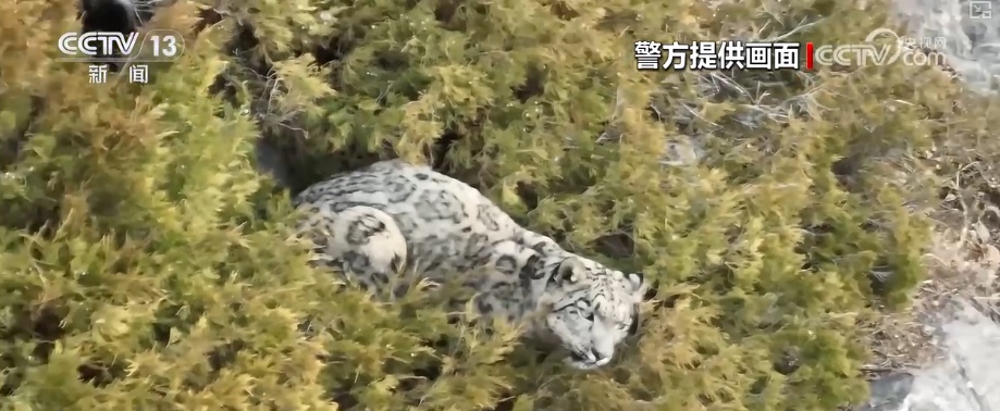 央视网消息:前两天,新疆博州边境管理支队民警在当地天山山区巡逻时,用无人机记录到雪豹的活动画面。拍摄到的成年雪豹身形健硕,银灰色皮毛上布满灰黑色花纹,目视着前方峭壁上的北山羊。
