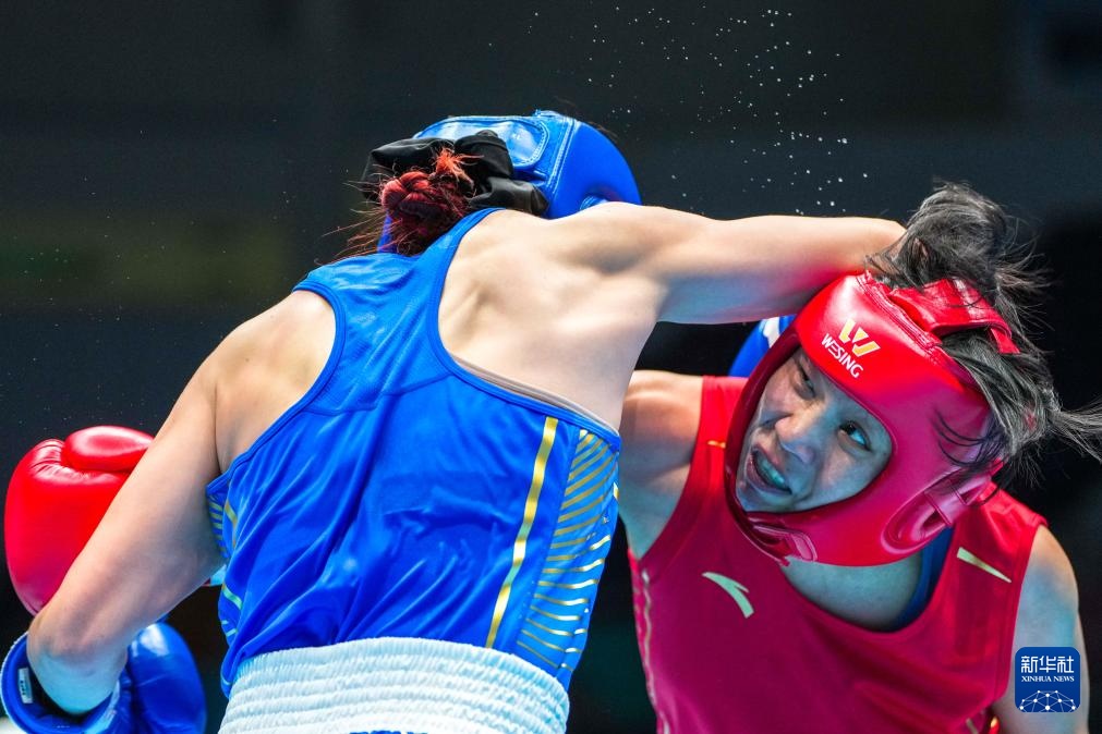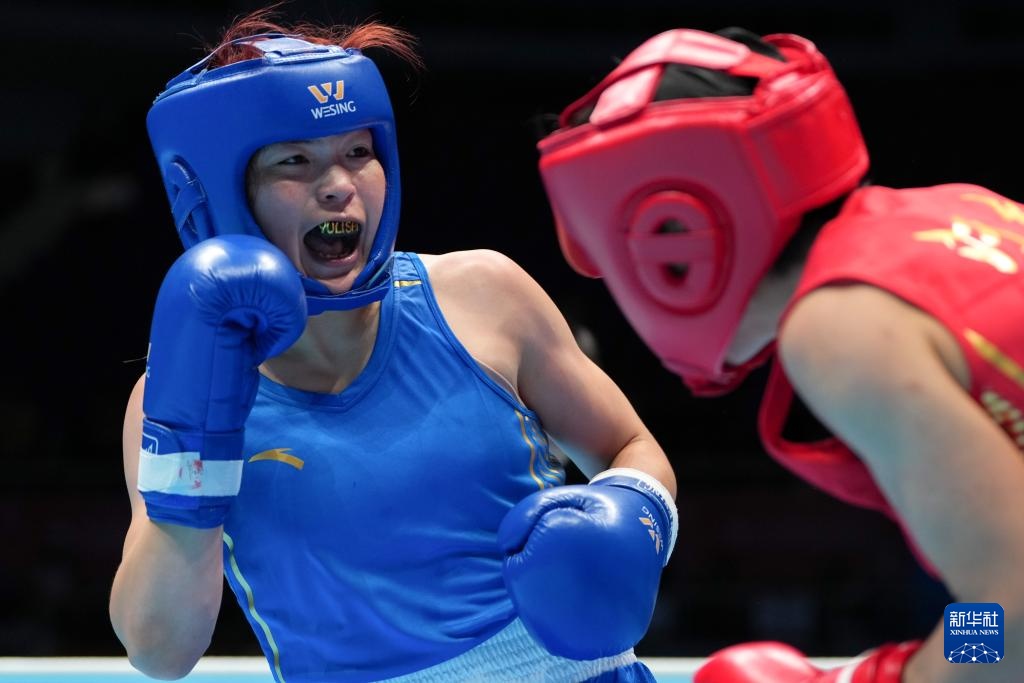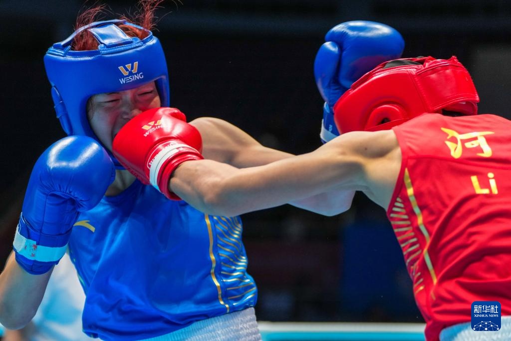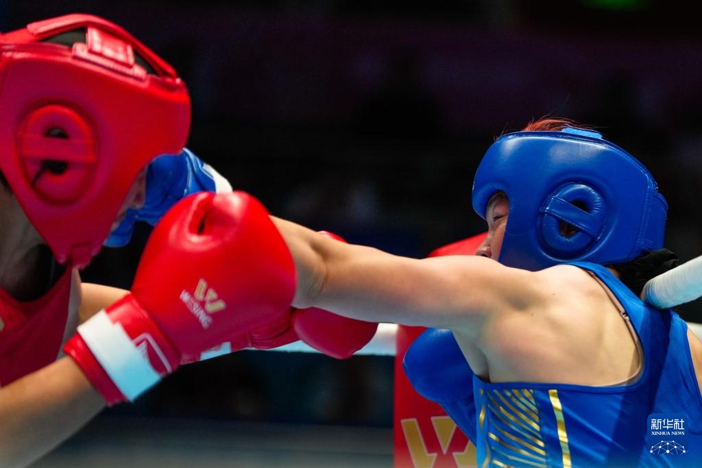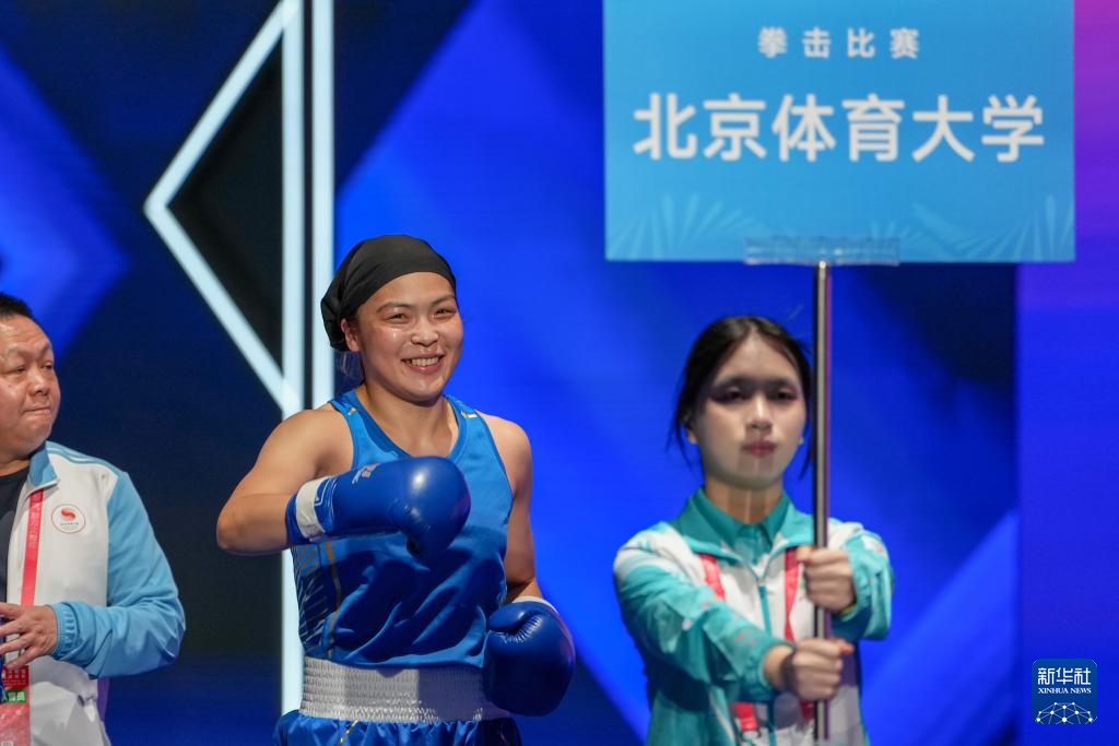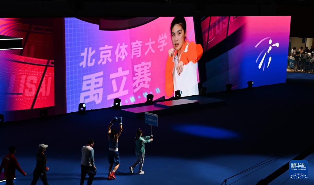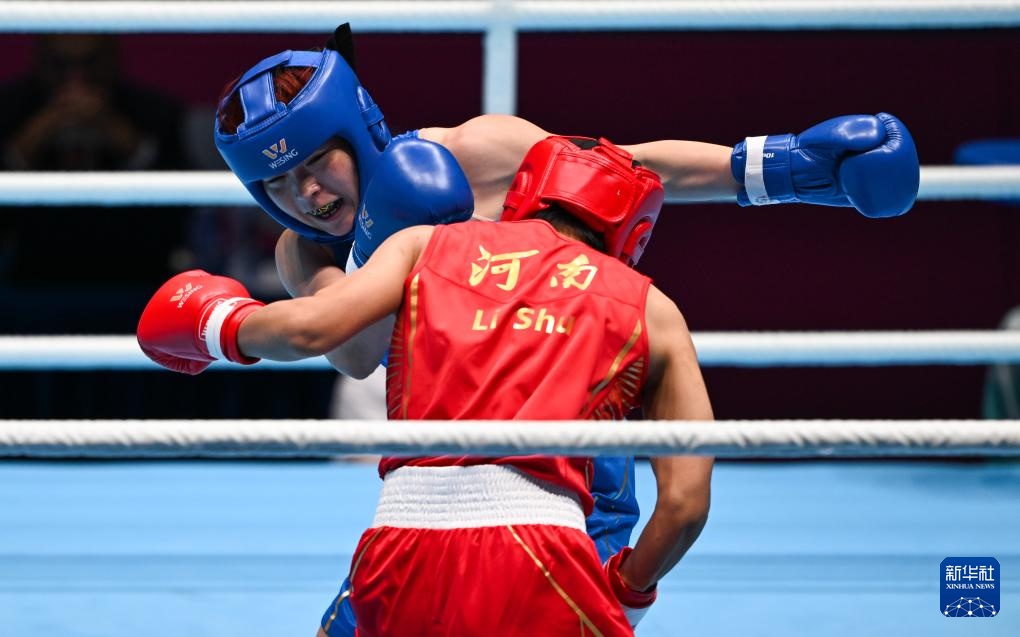 当日,在深圳进行的第十五届全国运动会拳击女子66公斤级决赛中,北京体育大学队选手禹立赛战胜河南队选手李书,获得冠军。