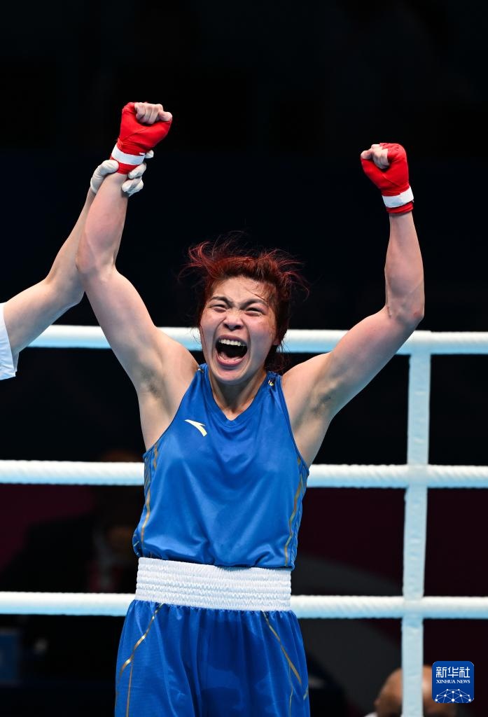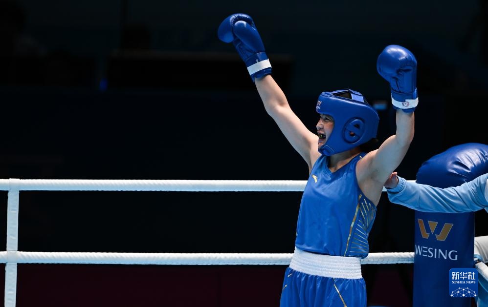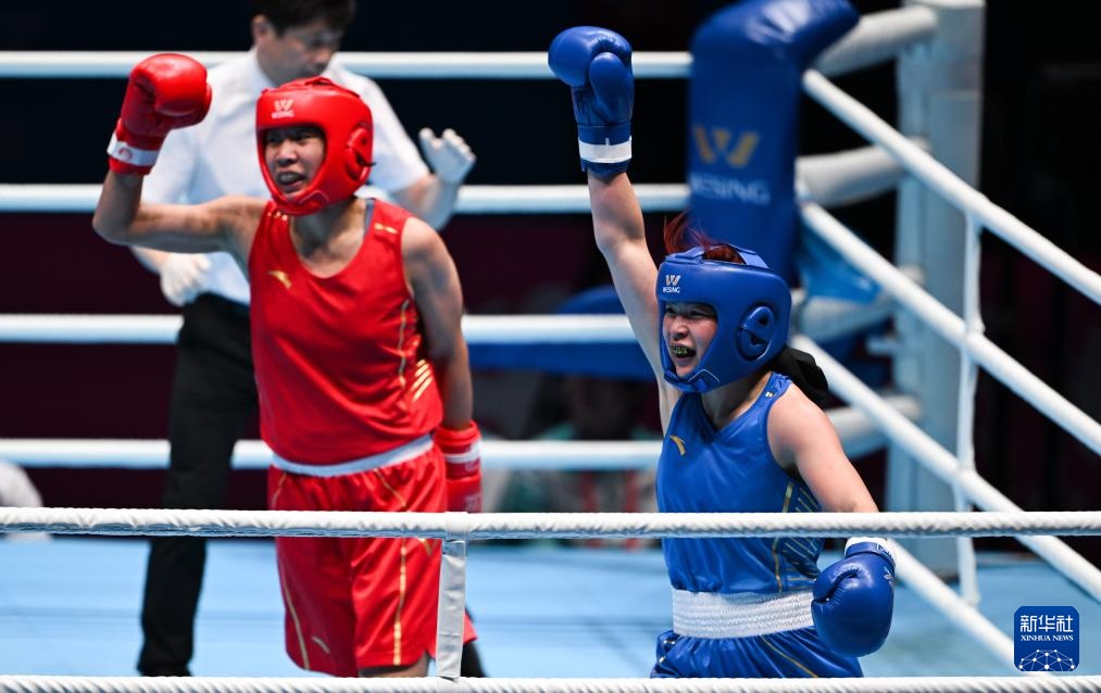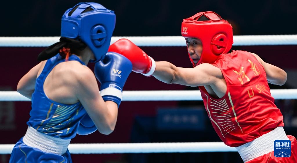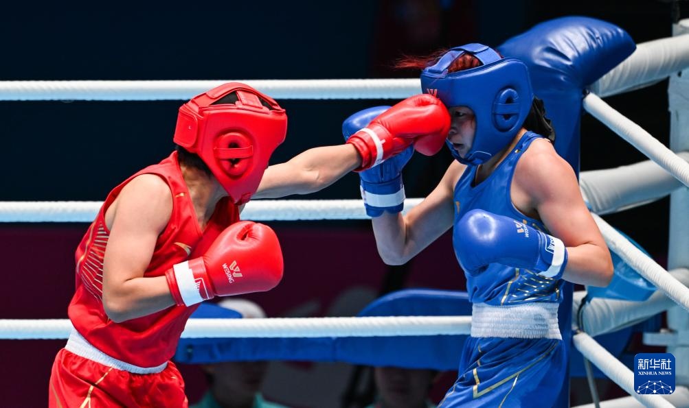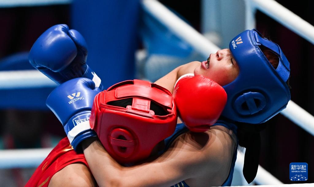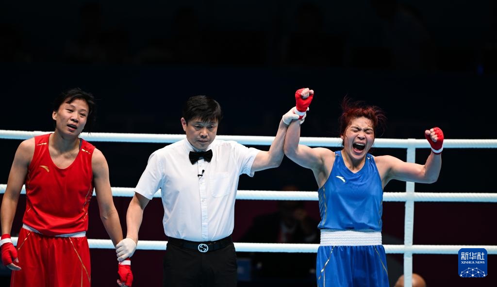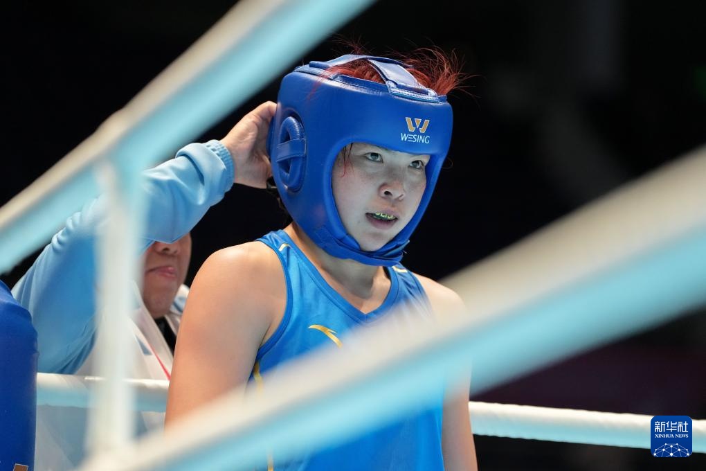 当日,在深圳进行的第十五届全国运动会拳击女子66公斤级决赛中,北京体育大学队选手禹立赛战胜河南队选手李书,获得冠军。